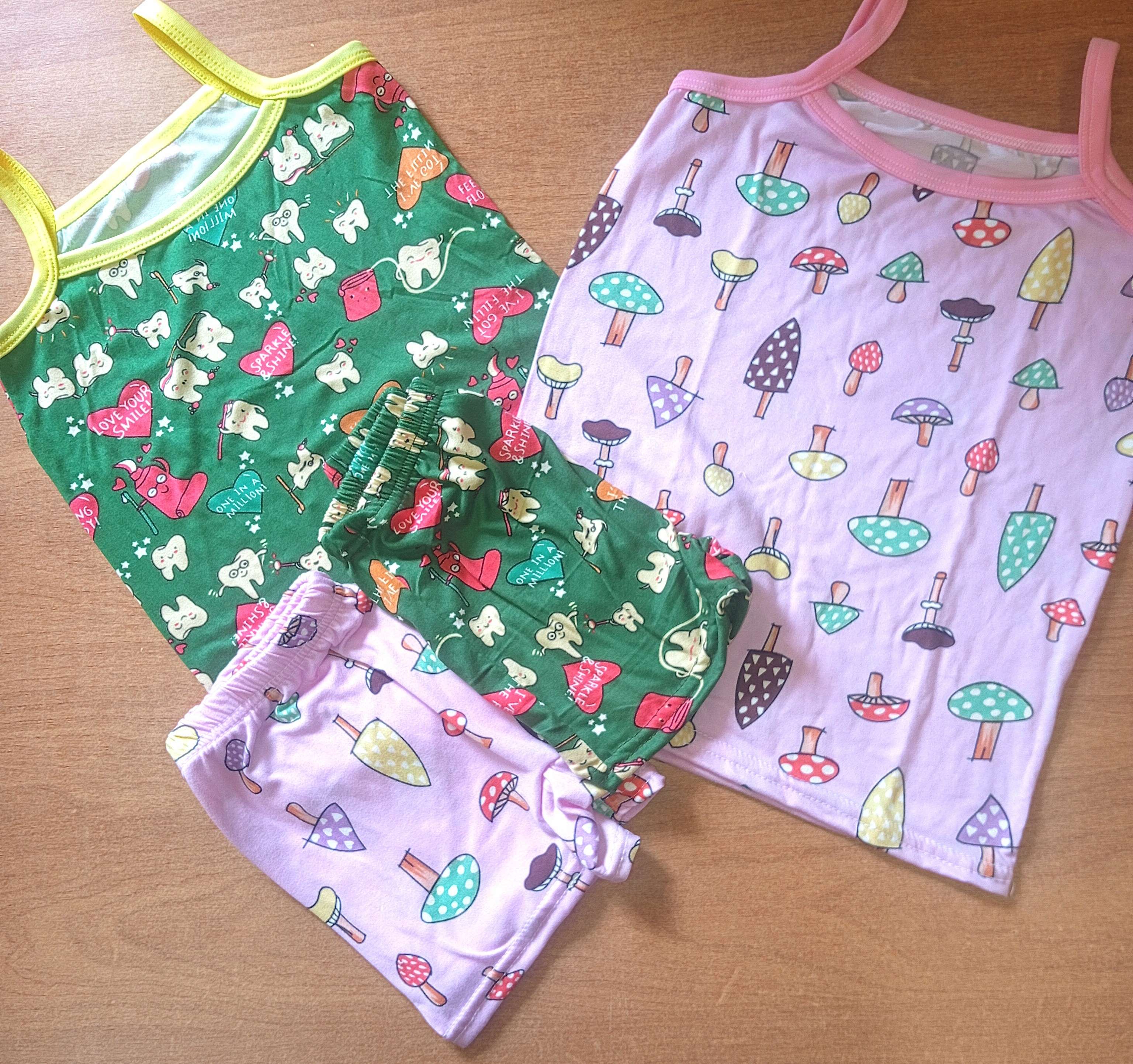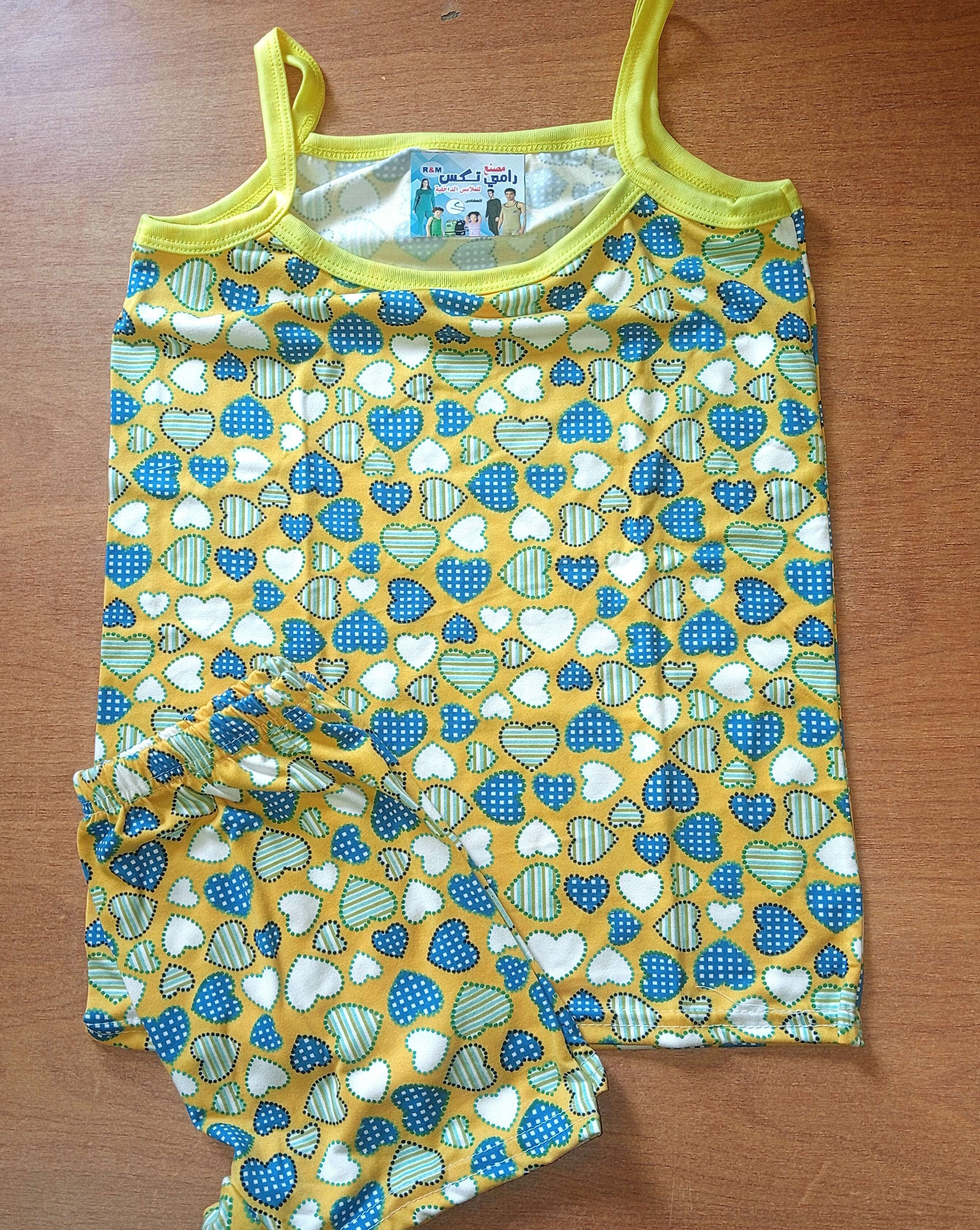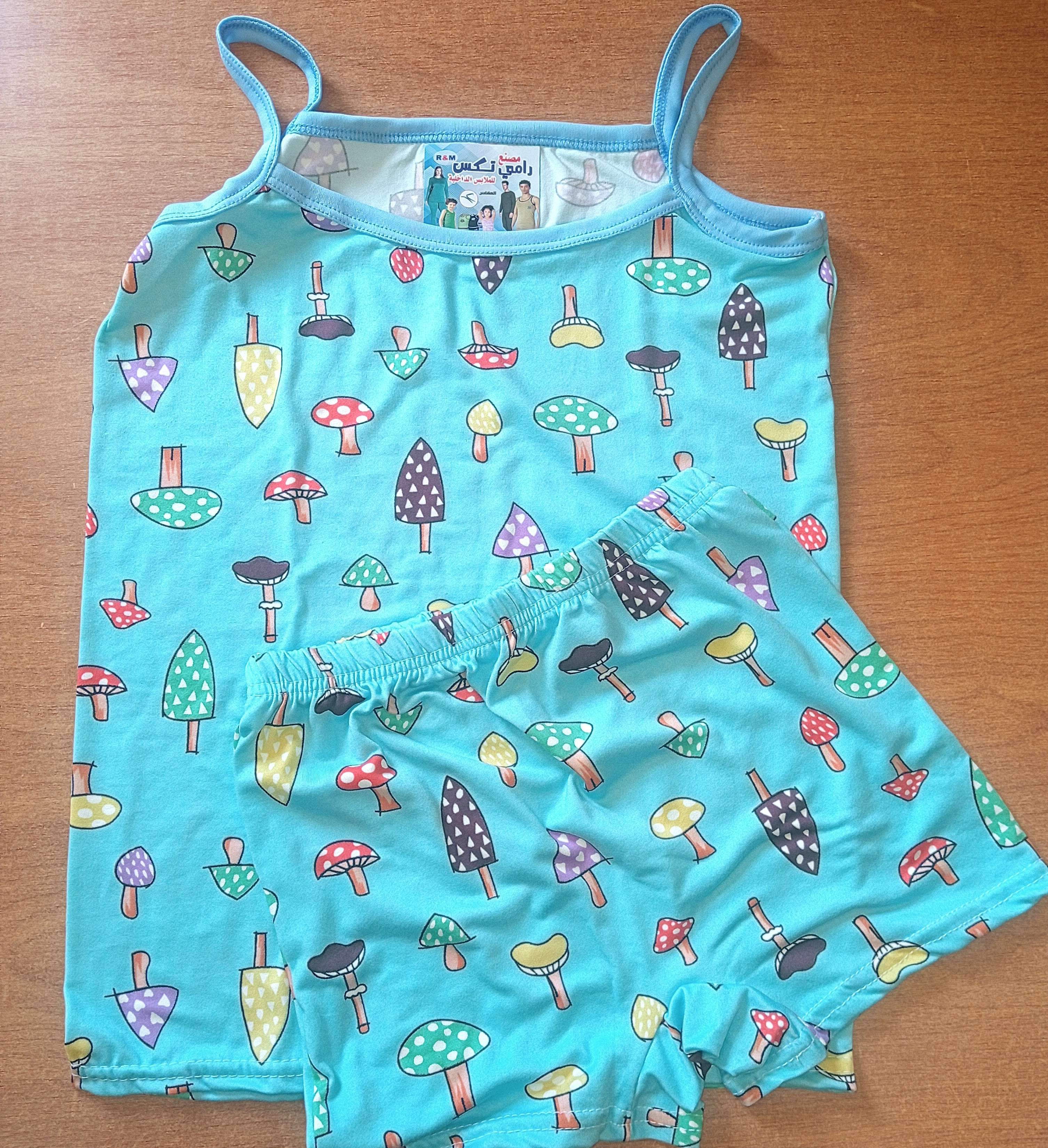 طقم اطفال بناتي قطن فايبر معالج الوان مبهجة مناسب للمصايف والبيت أو كطقم داخلي شورت وبادي حمالة الوان مميزة جداً يبدأ من مقاس 3 سنوات حتى 10 سنوات
