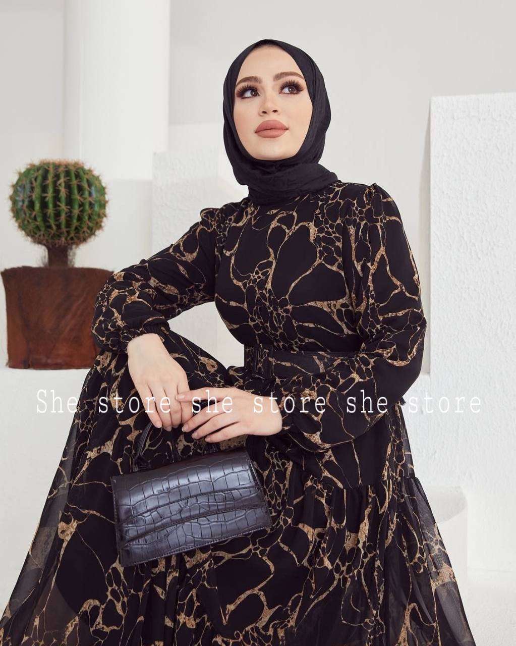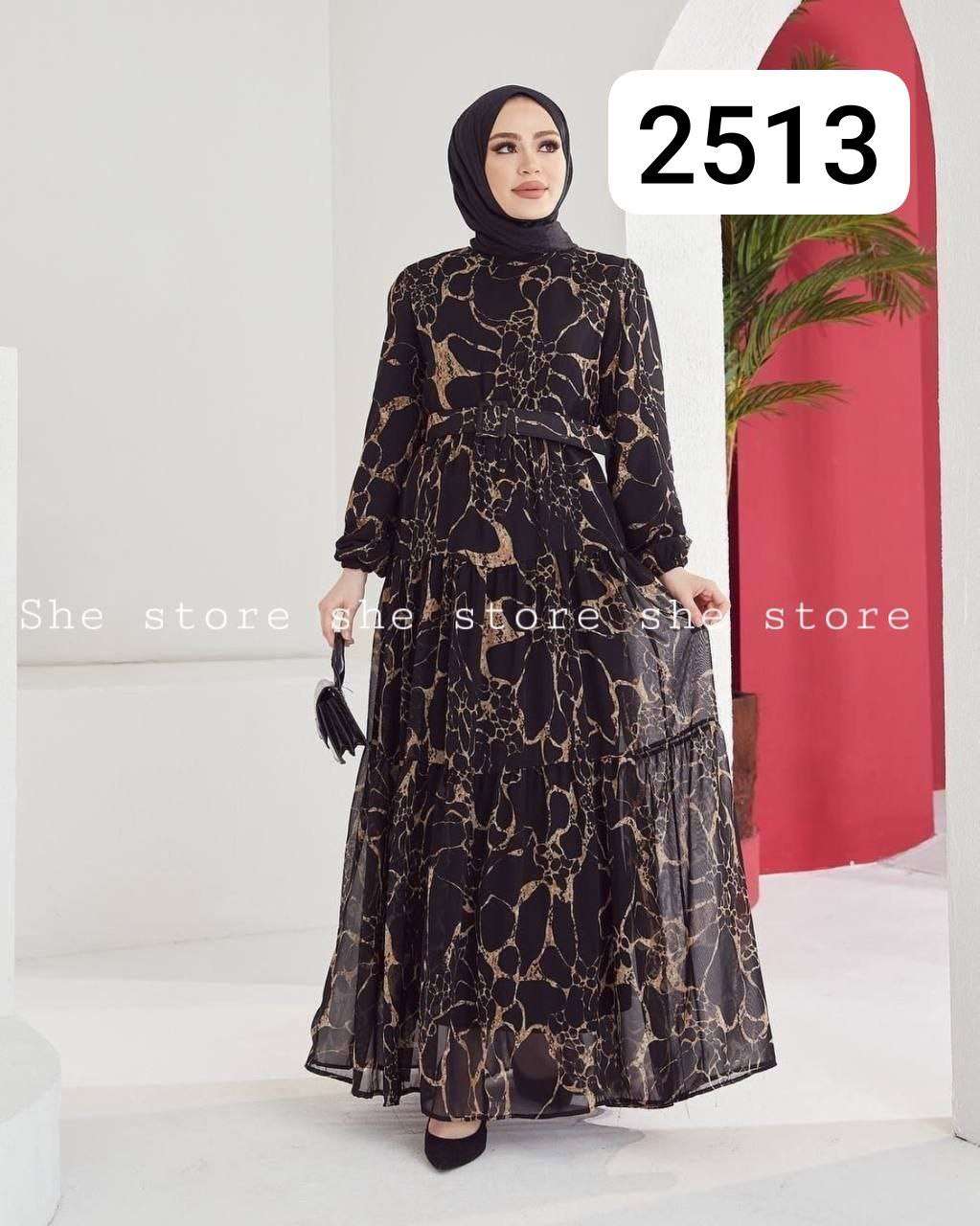 دريس شيفون مبطن معاه حزام من نفس البرينت الموديل⚡️⚡️دريس الخامه⚡️⚡️دريس شيفون مبطن السايز ⚡️⚡️ل٨٥ كود2513