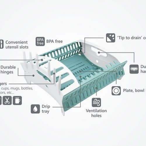 مصفاة الأطباق الأطباق و الكوبايات بتقع والمعالق بتضيع في كل حته المصفاه اللي عندك مبوظة شكل مطبخك ومش مرتبه مصفاة الاطباق المبتكرة فيها خانات كتيرة وأماكن خاصة للكوبايات والأطباق مميزاتها:- - ا