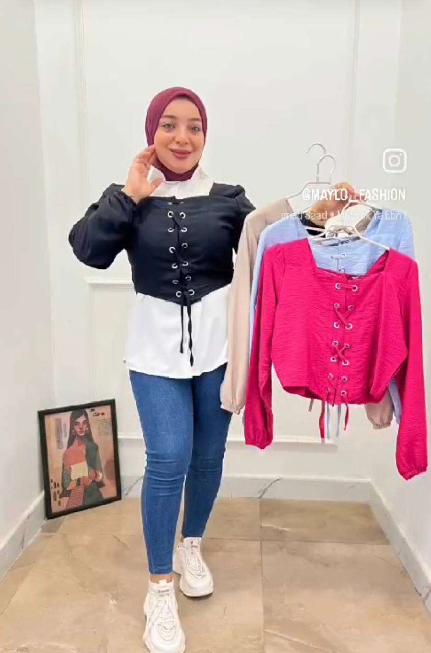 البلوزه وجمالها وحلاوتها ولا الوانها بجد تجنن🥰 استايل تحفه ورقيق وشيك بجد خطيره اووي وتحفه ❤️❤️ الموديل🎀بلوزة كتان رباط من الامام الخامة🎀كتان اسباني ضدد الانكماش عالى الجودة 🧵 المقاس