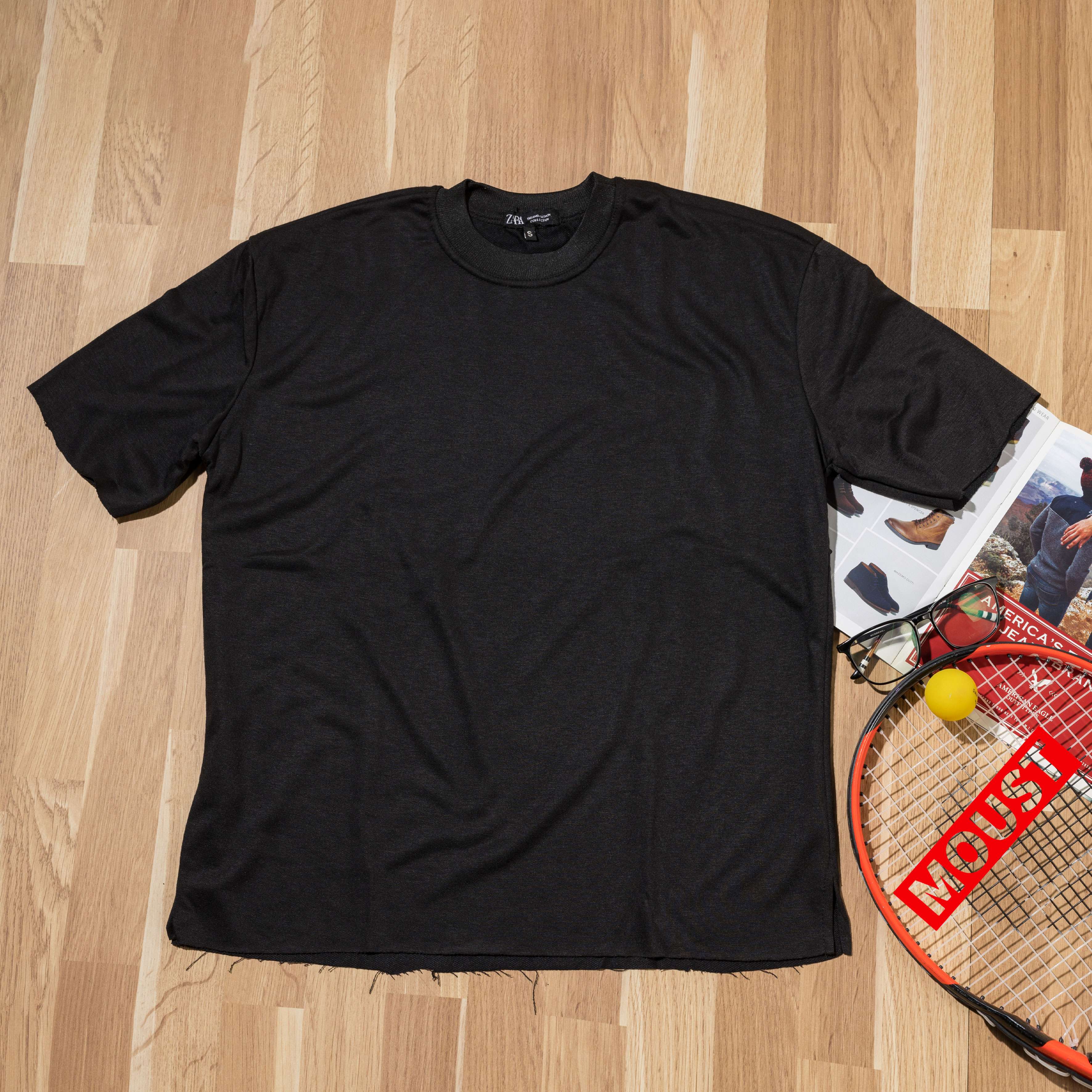 تيشيرت أوفر سايز و شنطة هاند لاكوست أسود