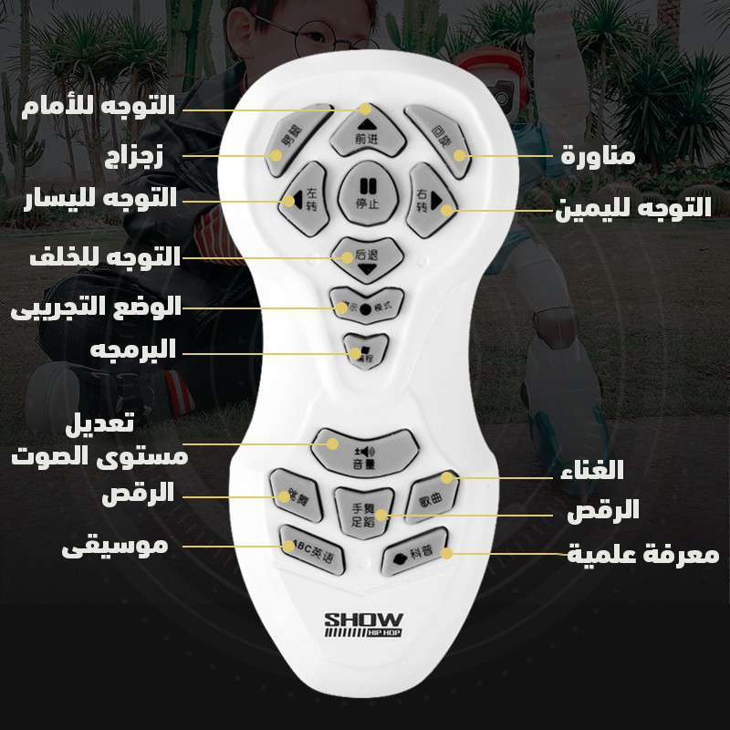 الروبوت الذكي الراقص بيتحرك في 7 اتجاهات، معاه وصلة USB، بيغني بيرقص و بينور، بيشتغل بريموت كنترول، لعبة ممتعة هضيف مشاعر إيجابية لطفلك.