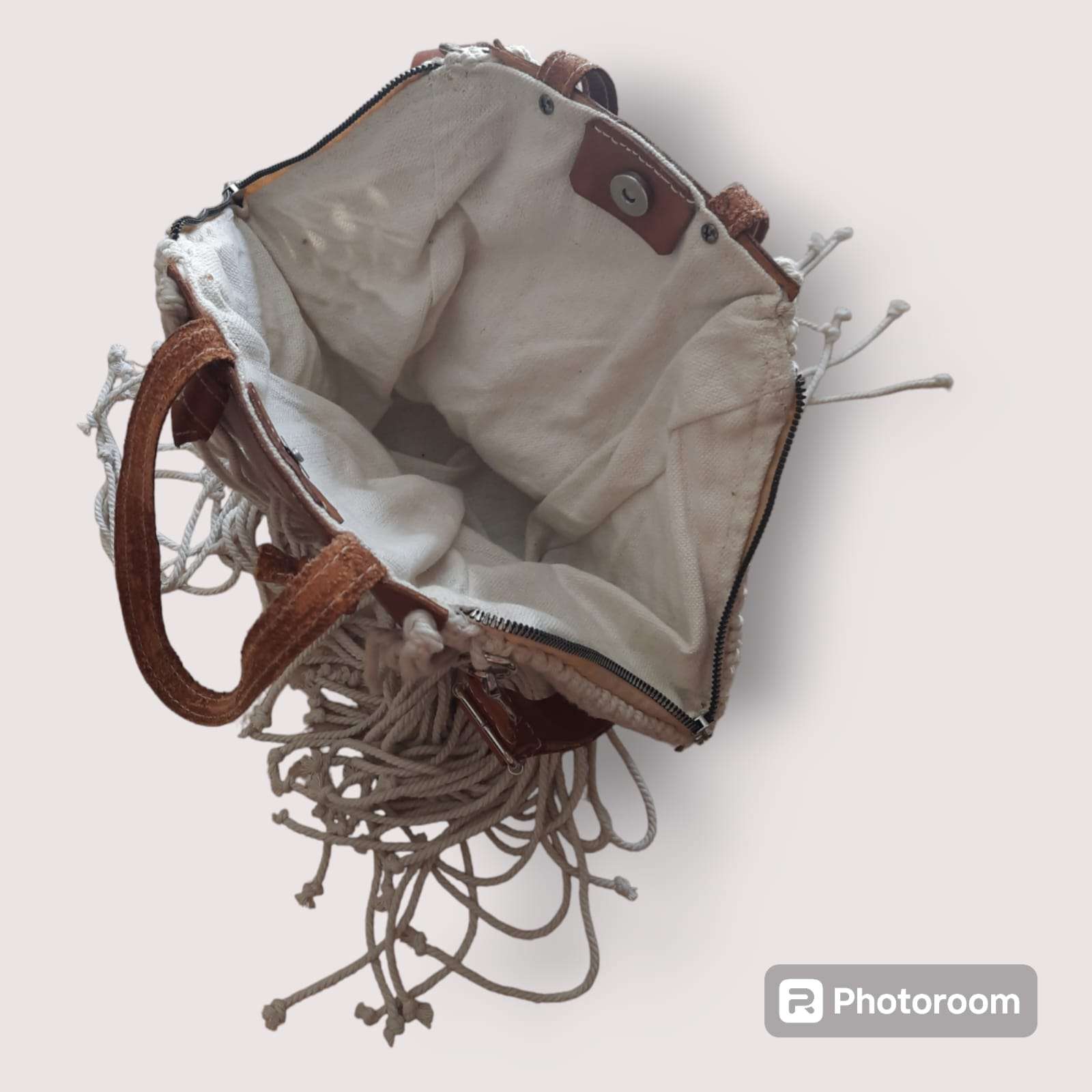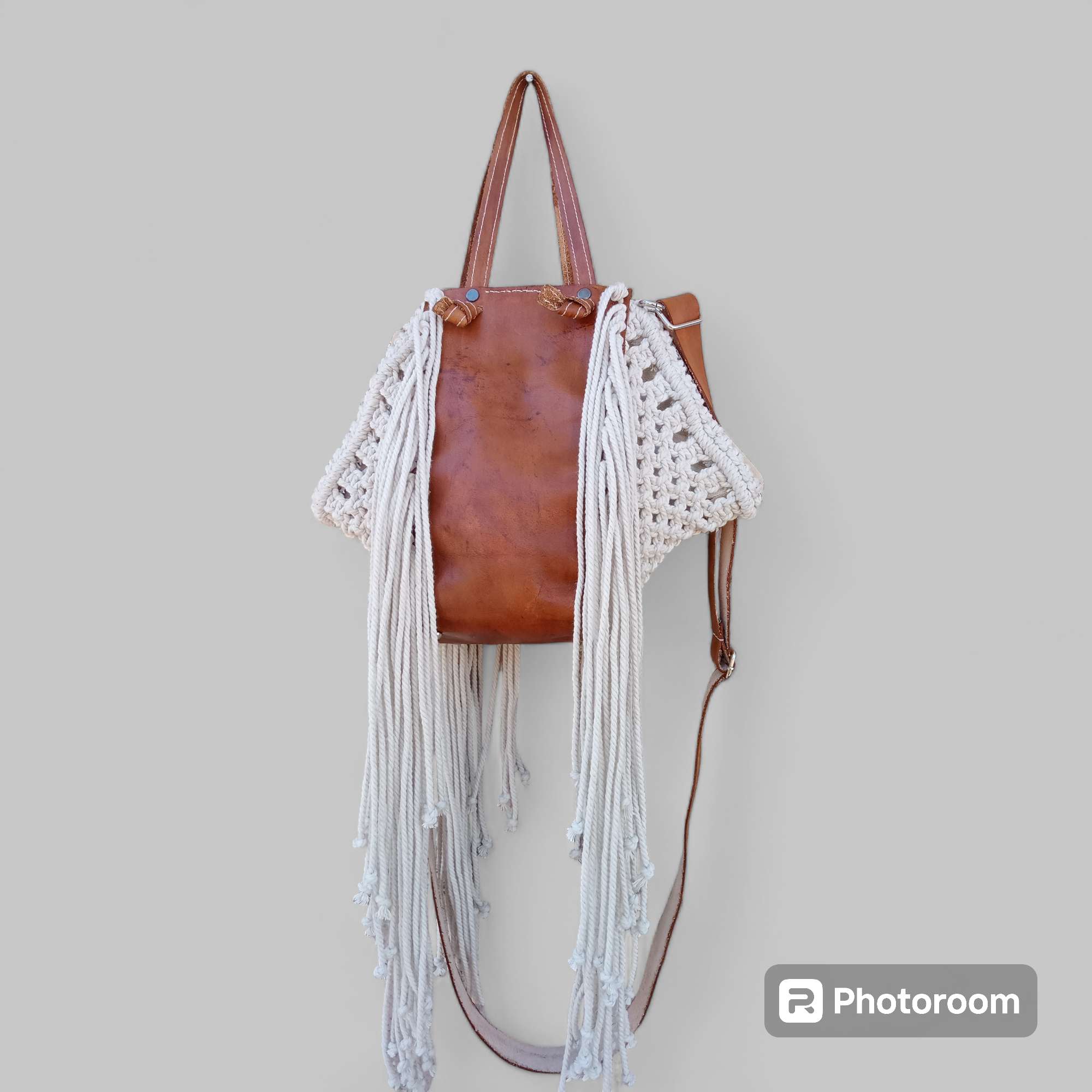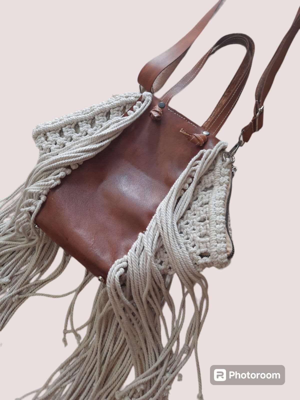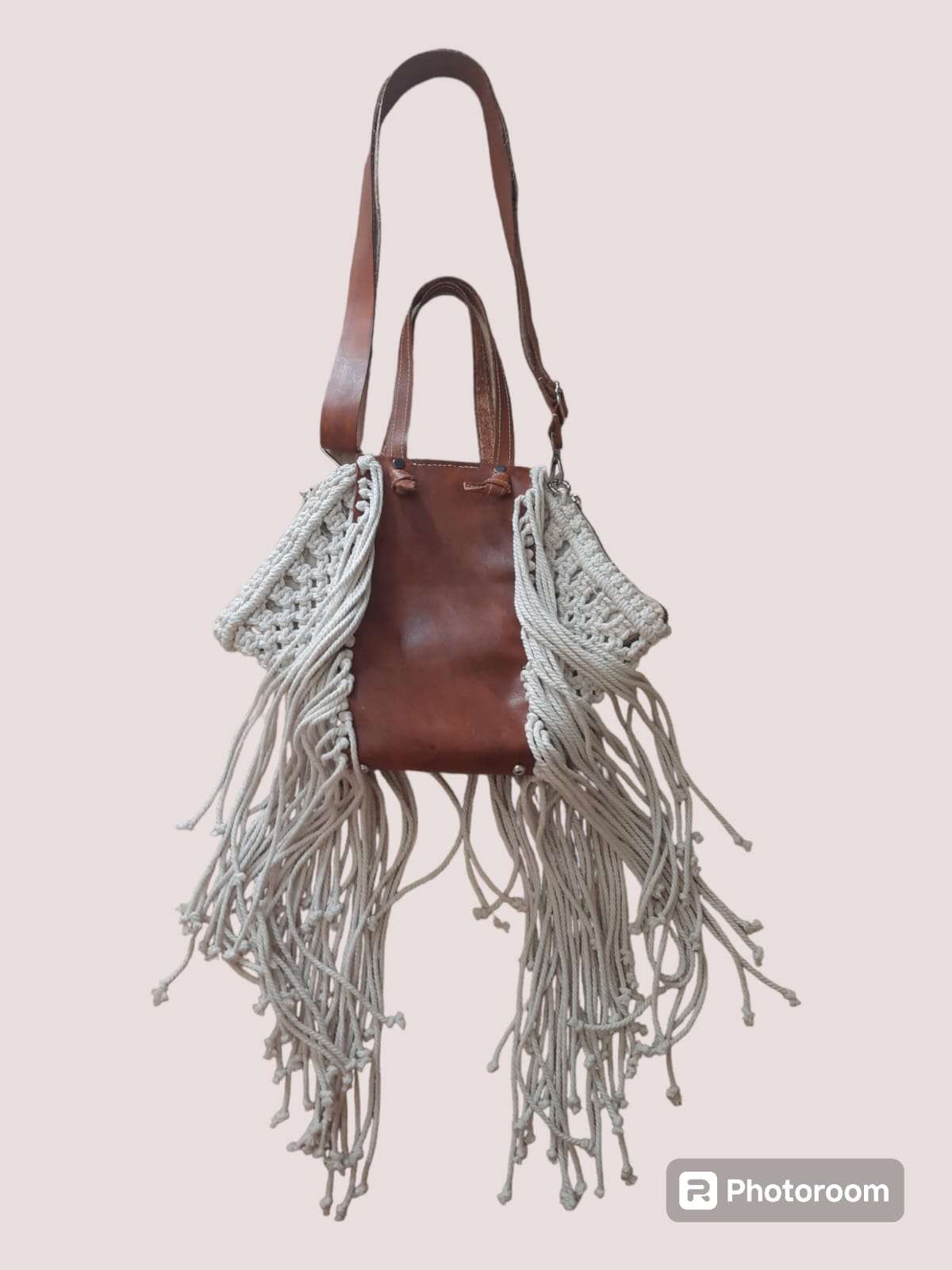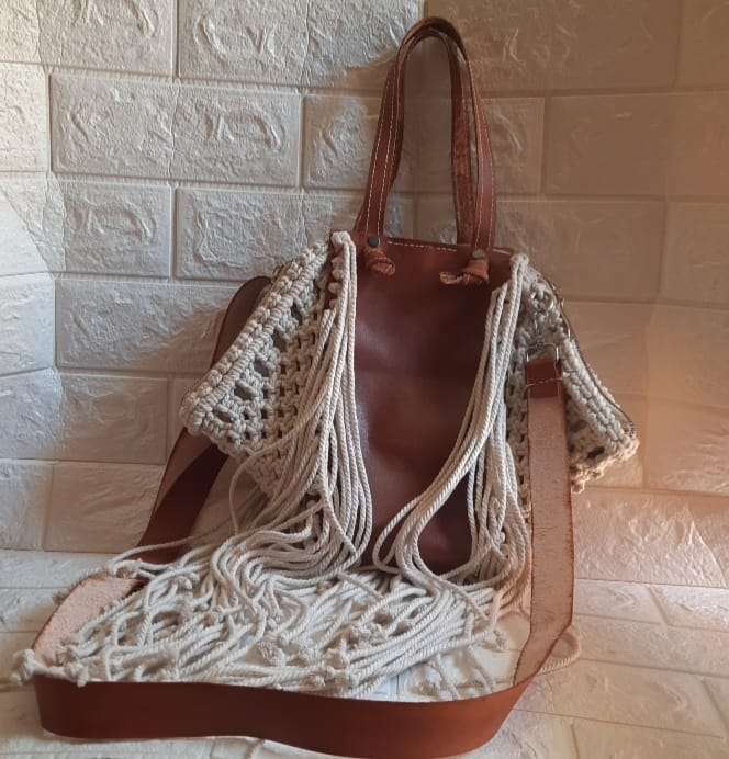 جلد طبيعي مع خيوط المكرمية مصنوعة بالكامل يدويا