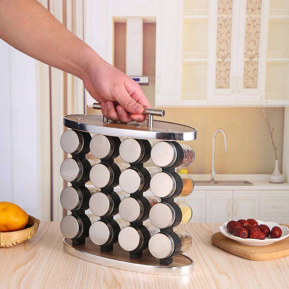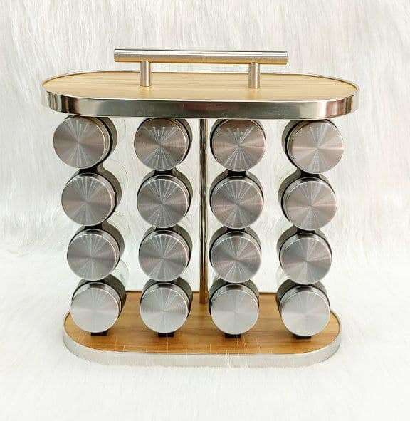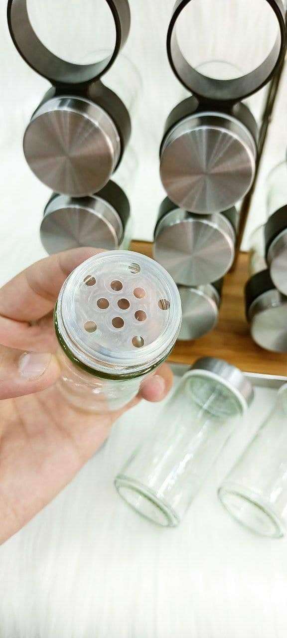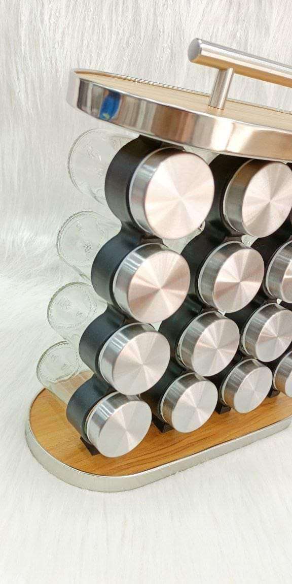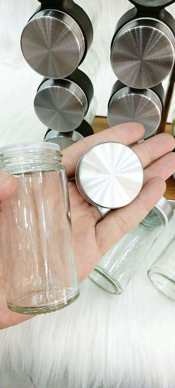 طقم توابل وبهارات 🧂🧂 مكون من 16 برطمان زجاج بغطاء استاليس وحامل بيد سعه البرطمان 200 مل