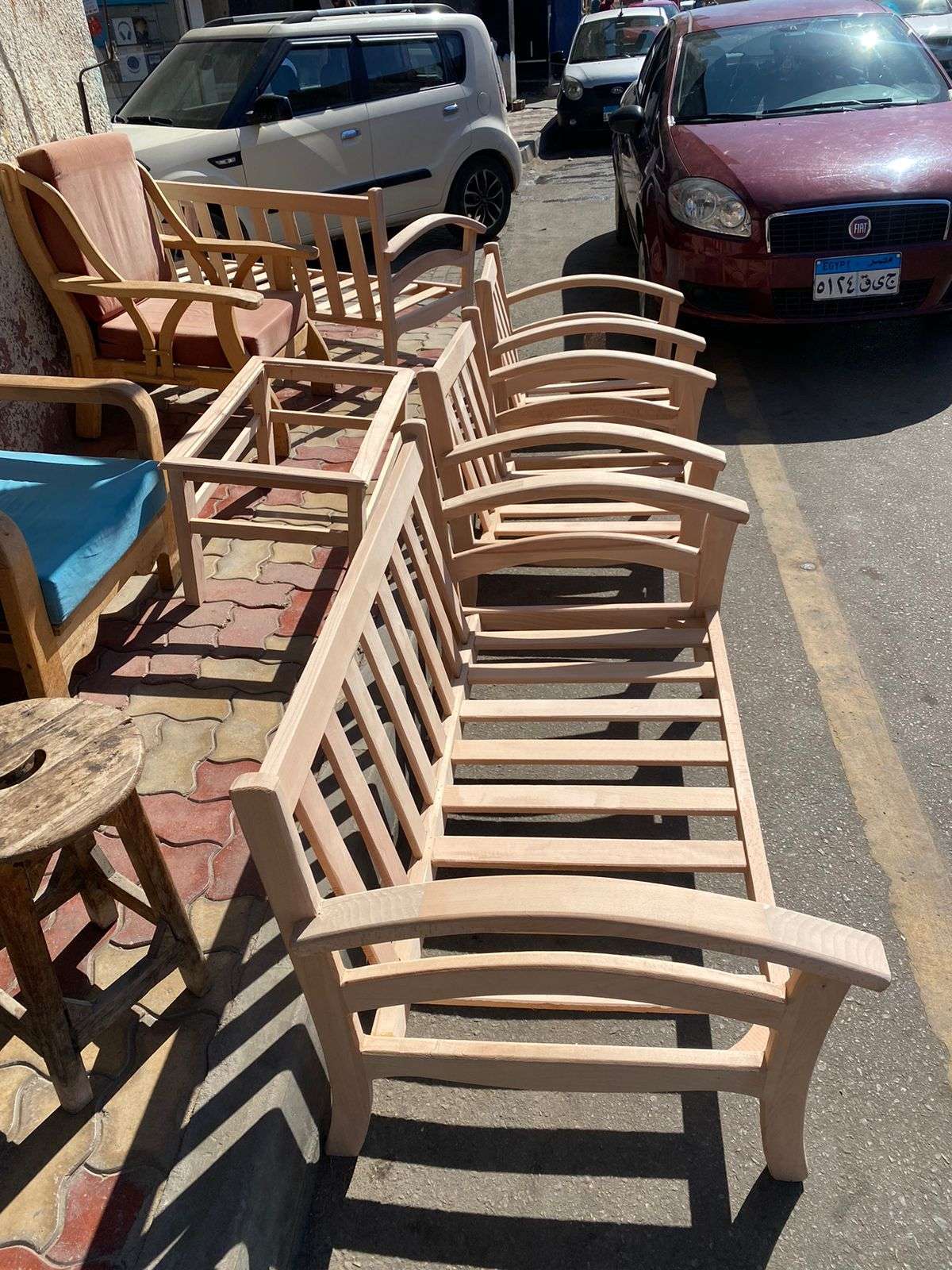 انتريه اسيوطى زان محمل من كنبه ثلاثيه و٤ فوتيه وترابيزه بالخام قماش جلد مقلوب كافيه الاسفنج ضغط عالى كثافه ٣٦% جاهز على التحميل