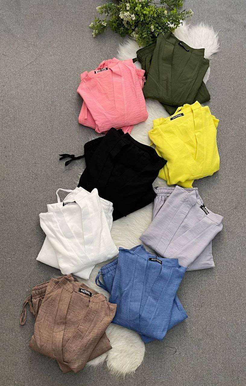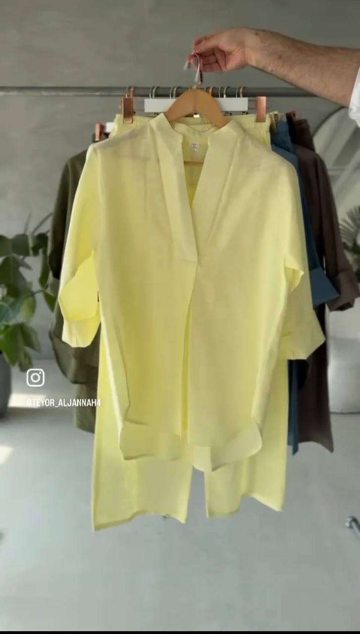الموديل 🔥سوت قطعتين نص بندا حاجه كده وهم الماتريال🔥كتان اسبانى معالج ضد الانكماش المقاس🔥ون سايز تلبيس ل80.85ك مرتاح السعر🔥450