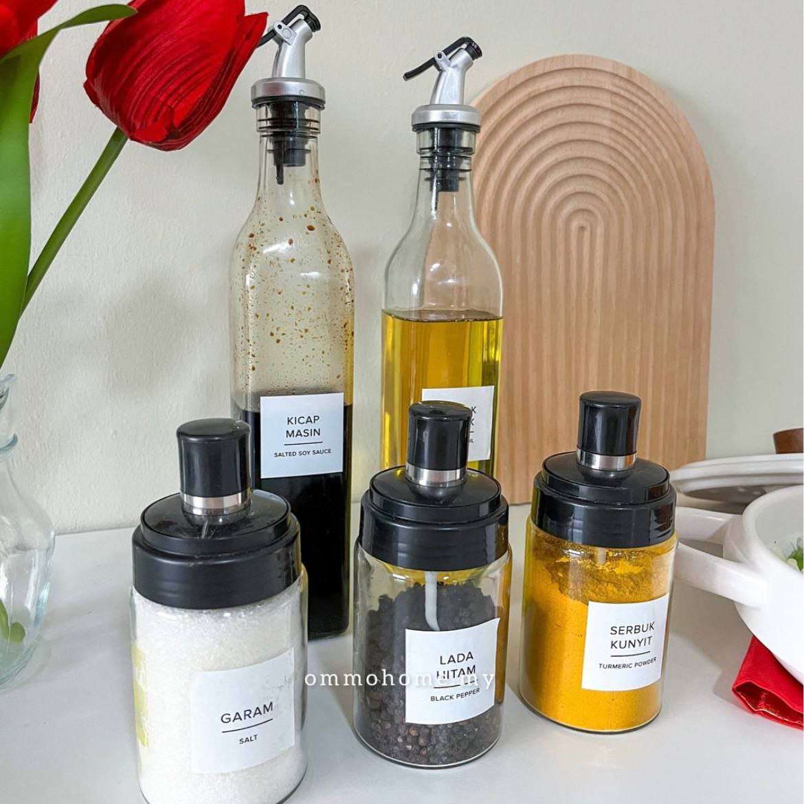 لمطبخ منظم جبنالك طقم زياته مطبخ 7 قطع لطقم خاامة زجاج 3 برطمان توابل بالمعلقة 2 زياته 500ملي 2 قمع لتفريغ زجاجات الزيت والخل
