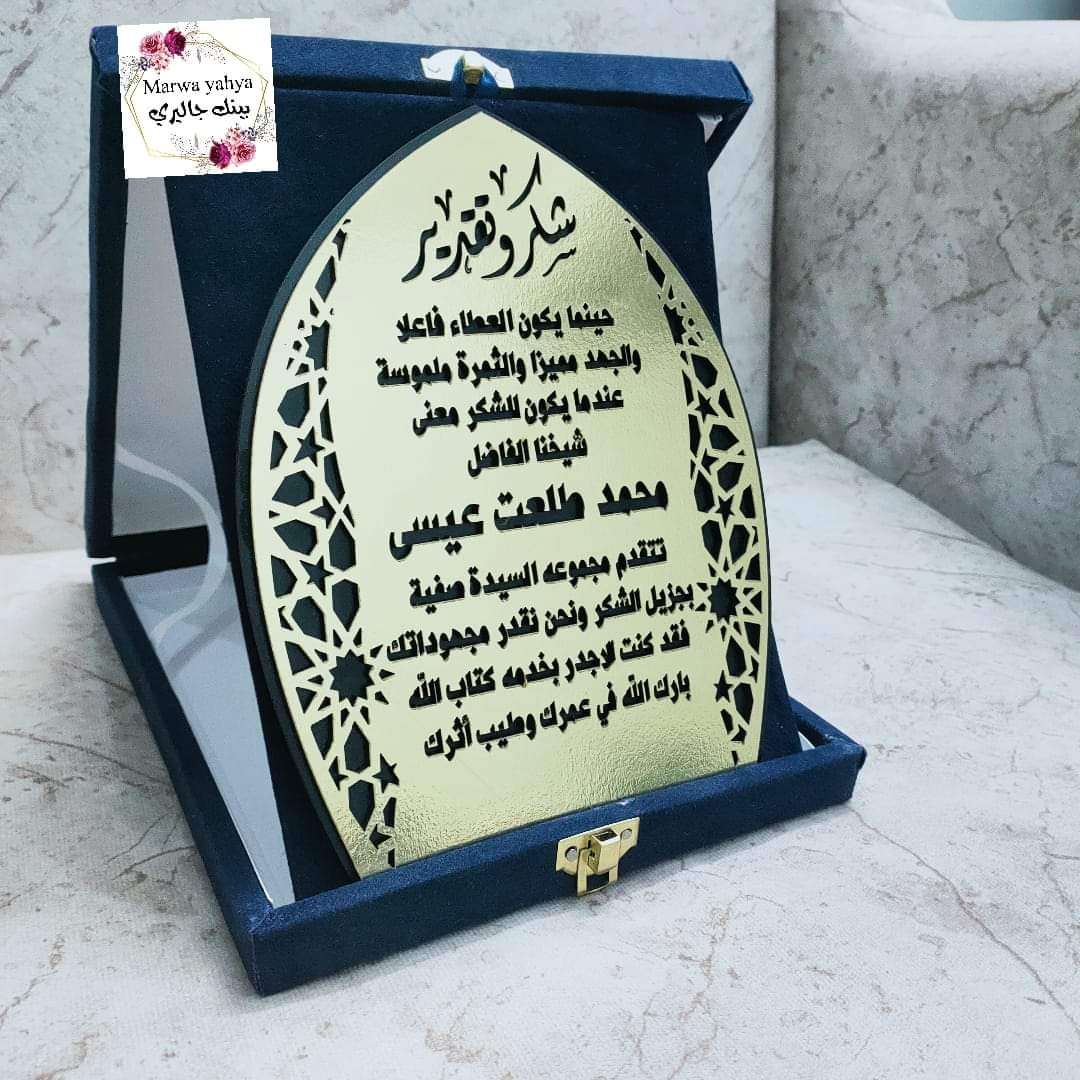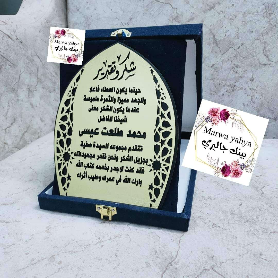 درع شكر وتقدير خشب بعلبه قطيفه متاح تنفيذ اي شكل