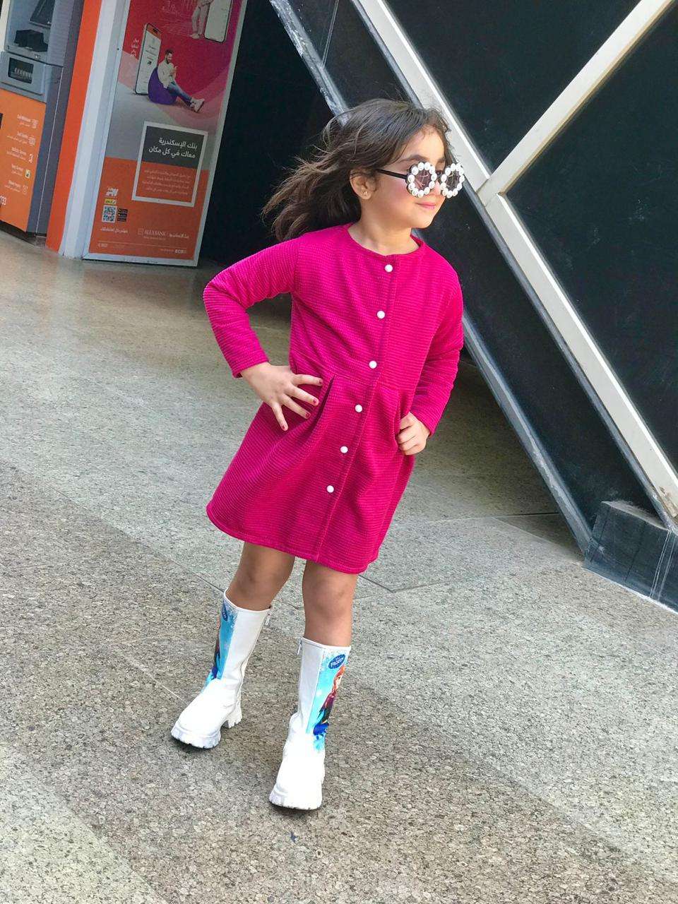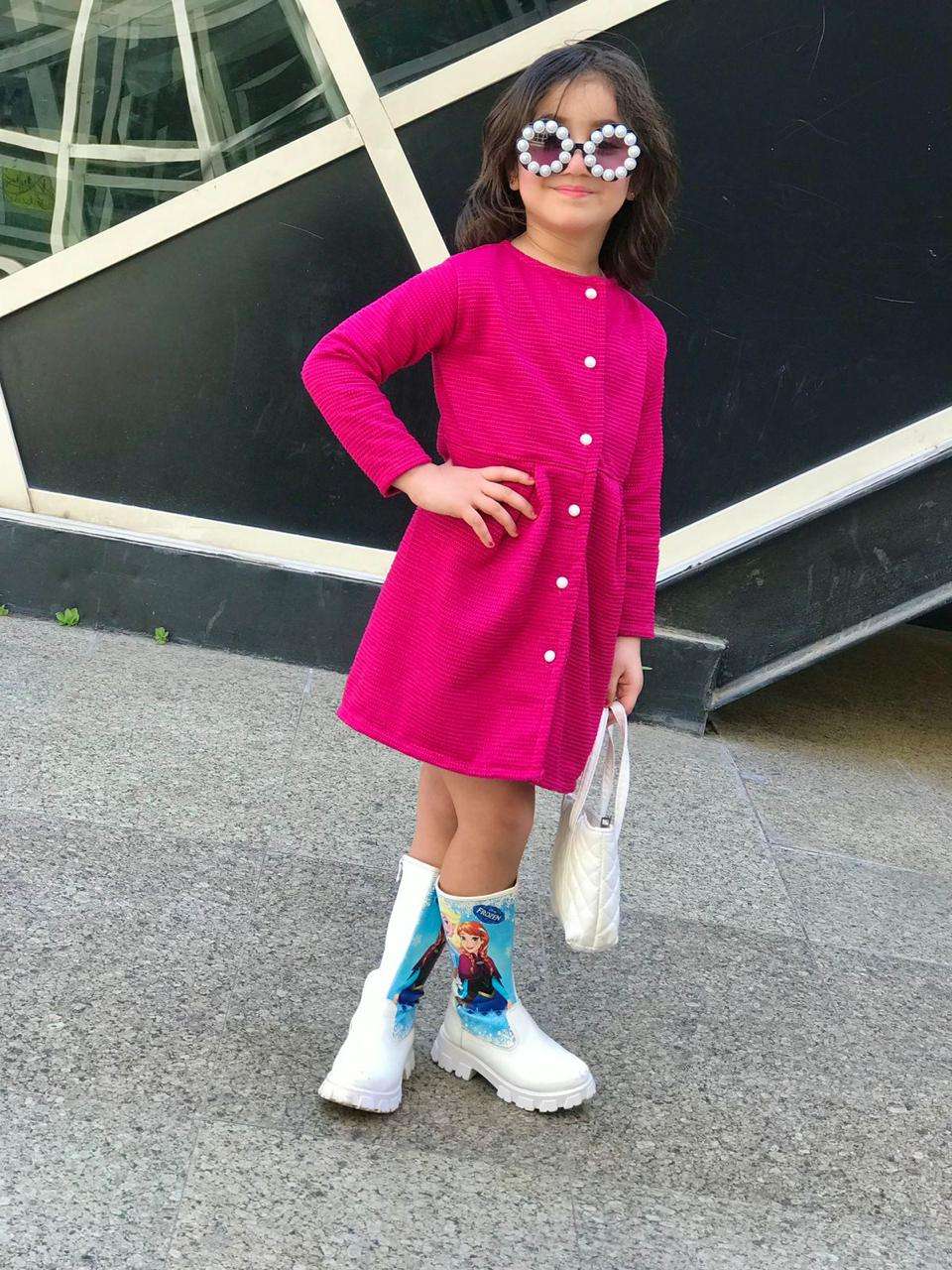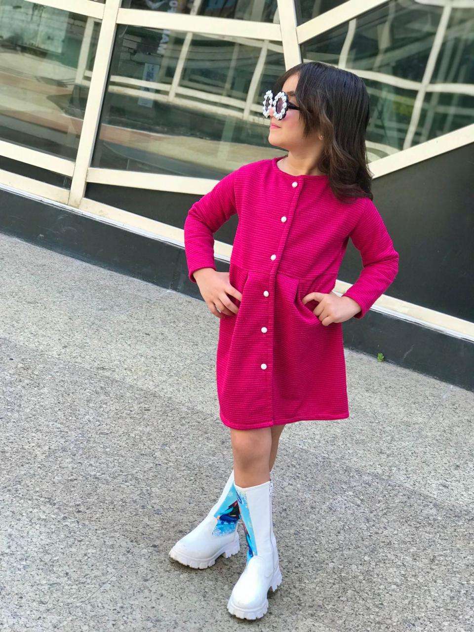 فستان بناتي شتوى من خامة التريكو المبطن لون فوشيا بزراير لولي شيك جدا