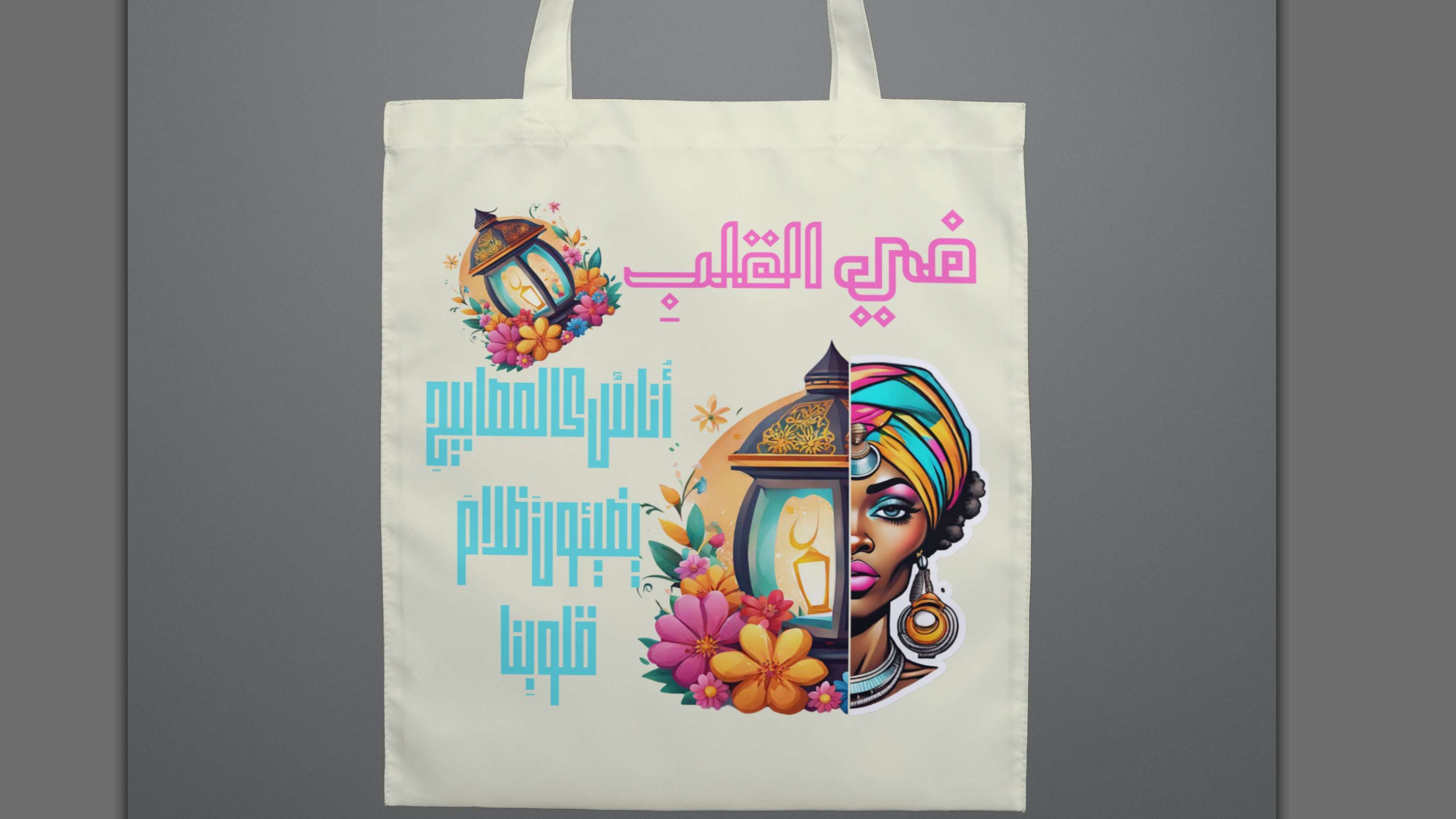 شنطة توتي باج إمرأة إفريقية سمراء و مصباح و زهور