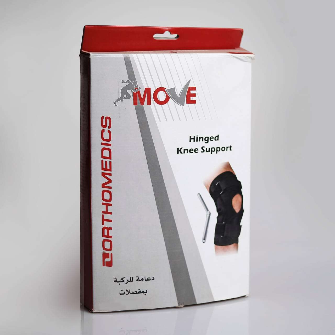 ركبة مفصلية بدعامه مصنوعة من خامات النيوبرين عالية الجودة ، مع الغلق بواسطة شرائط فيلكرو اللاصقة والقابلة للتعديل. وفتحة عند عظمة الرضفة ، بالإضافة إلى مفصّلات مزدوجة ومتعددة المراكز على جانب ووسط ا