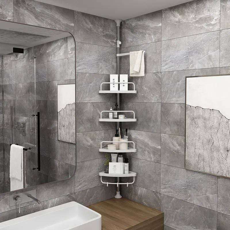 ركنه حمام ✨ 4 دور ومزود بحامل فوطه القوائم استانليس و الارفف بلاستيك متين .... العمود قابل للتمدد باطوال مختلفه 🌟🌟 بيتم تثبيتها م بين الارض او البانيو و السقف علي حسب الارتفاع المطلوب