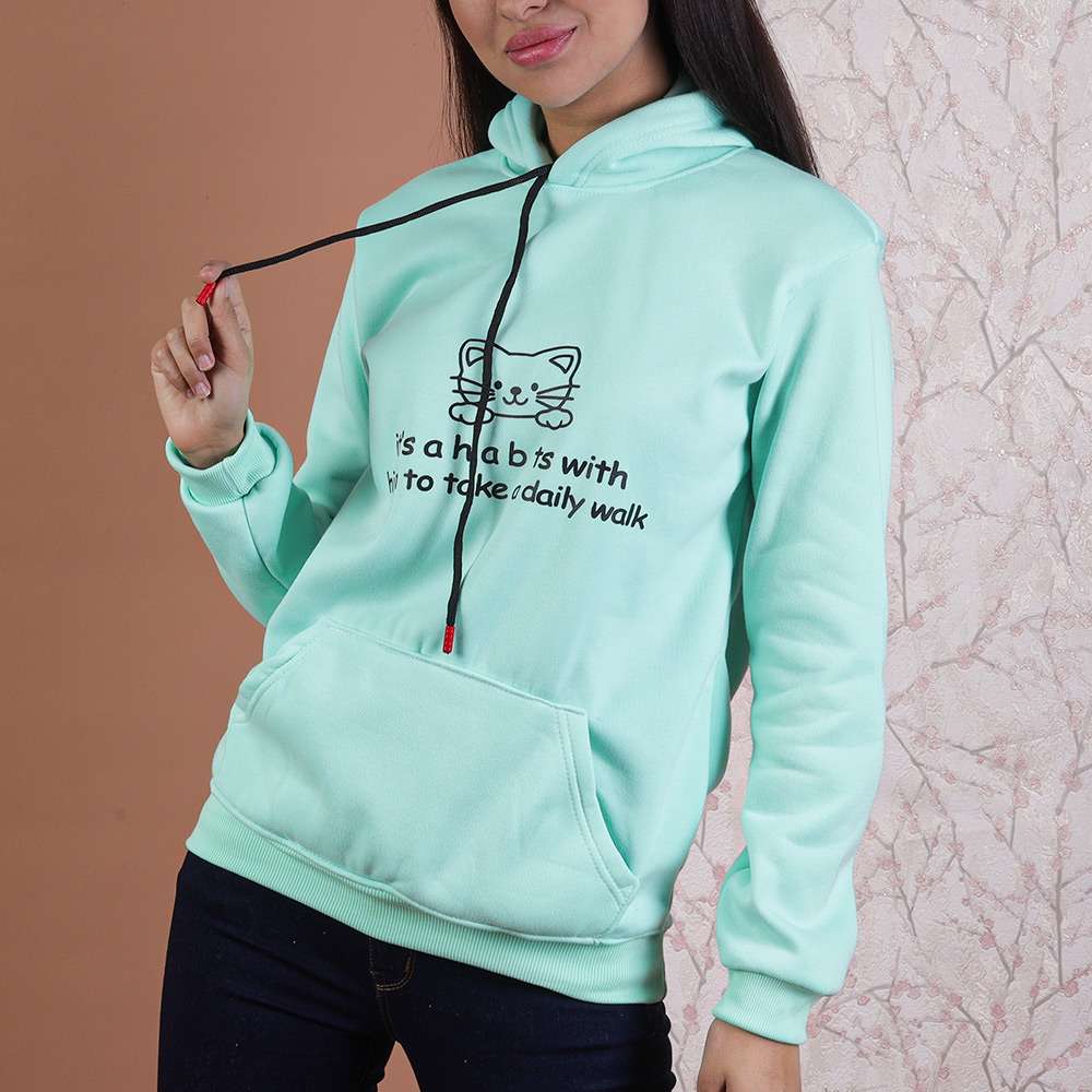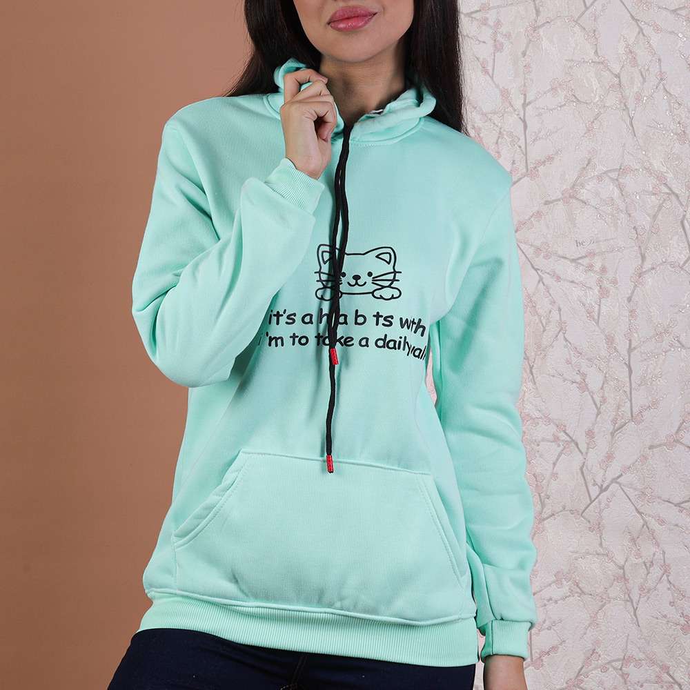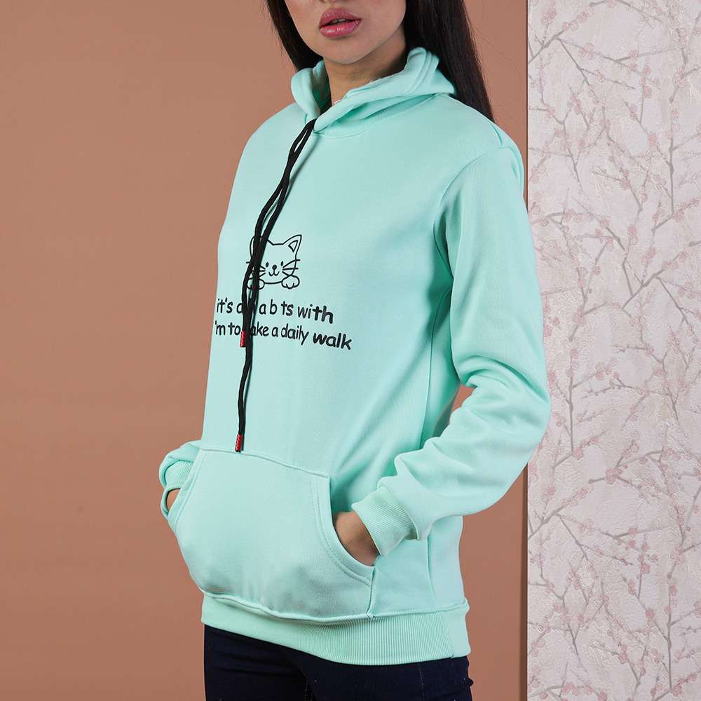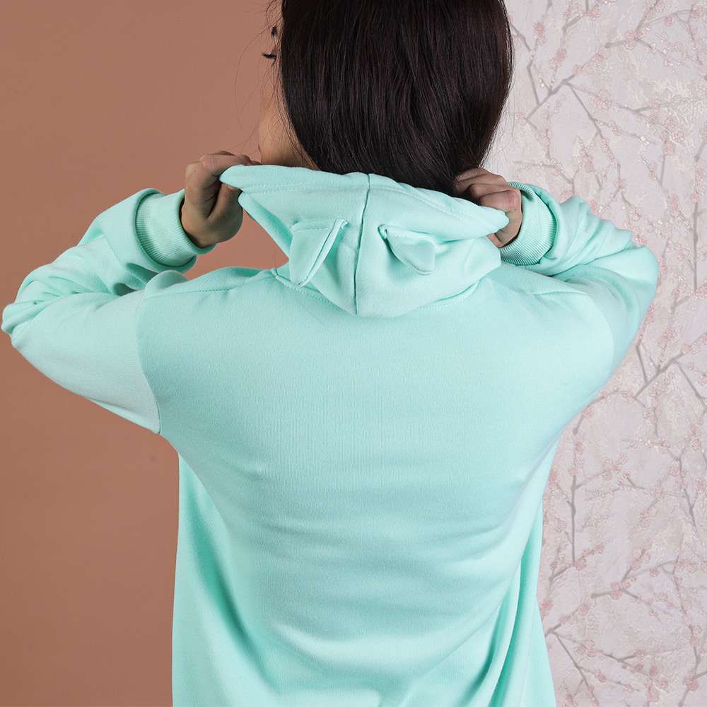 • *تفاصيل* • الموديل:سويت شيرت CAT • الخامة: ميلتون مبطن • اللون: مينت جرين • جيب واسع • كابيشو • أكمام بسوار • *مقاسات* • وان سايز • يلبس من 50 كيلو الى 70 كيلو • الابعاد: (الطول 67، العرض