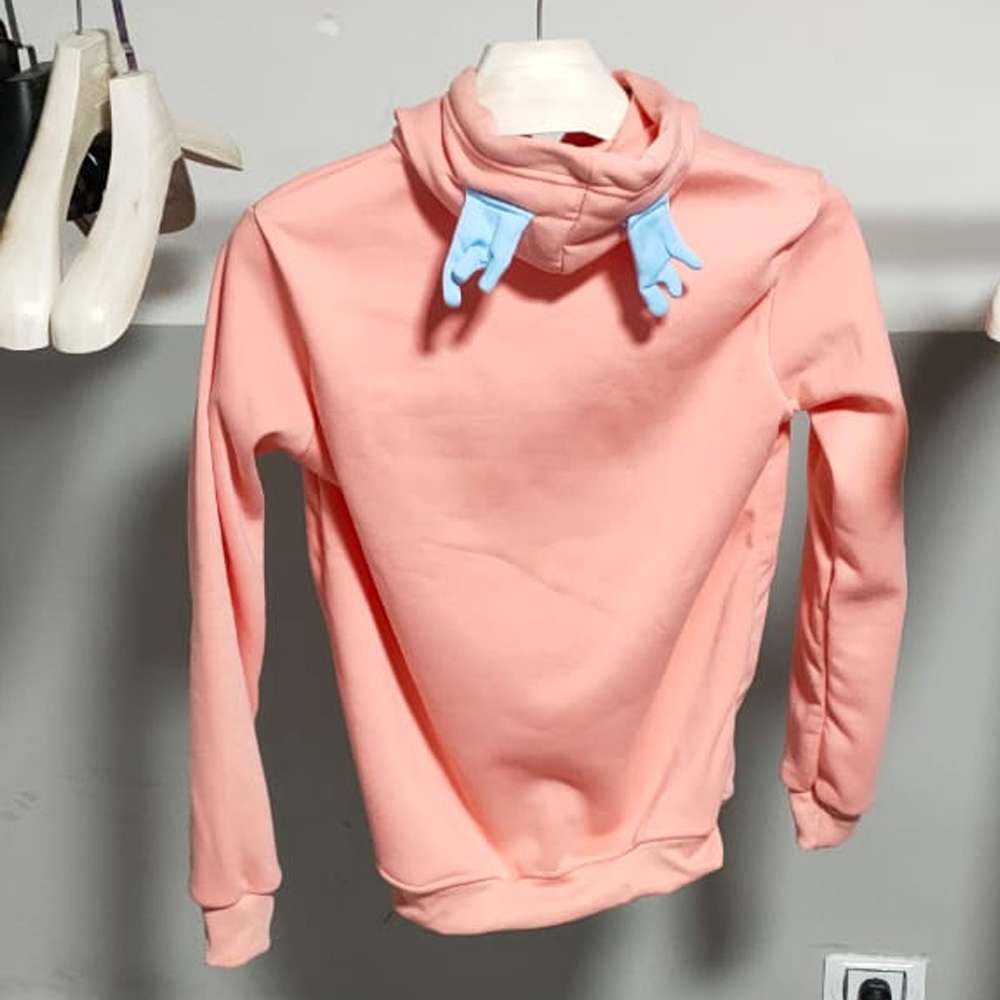 • *تفاصيل* • الموديل: سويت شيرت كاو • اللون: (بينك) • جيب واسع • كابيشو • أكمام بأساور • *مقاسات* • وان سايز • تلبيس من 50 كيلو الى 70 كيلو • الابعاد ( الطول 68 سم، العرض 49 سم، طول الكم 61