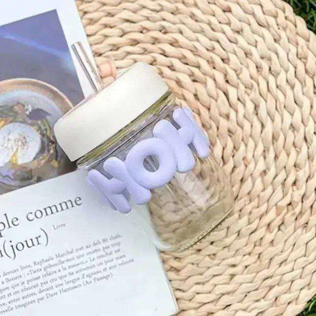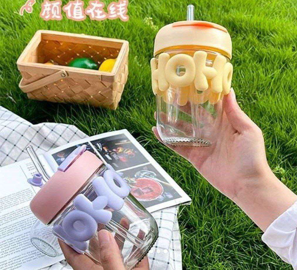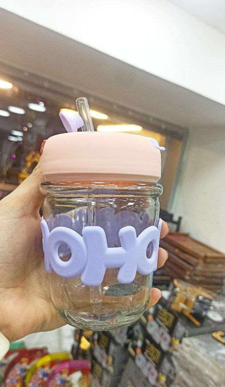 كوب HOH كوب زجاج بايركس بكفر سيلكون مزودة بشاليموة زجاج الكوب 2*1 يستخدم بالشاليموة ويستخدم للشرب المباشر.. غطاء محكم الغلق مانع الانسكاب عبوة 450 ملي