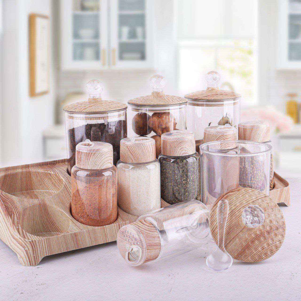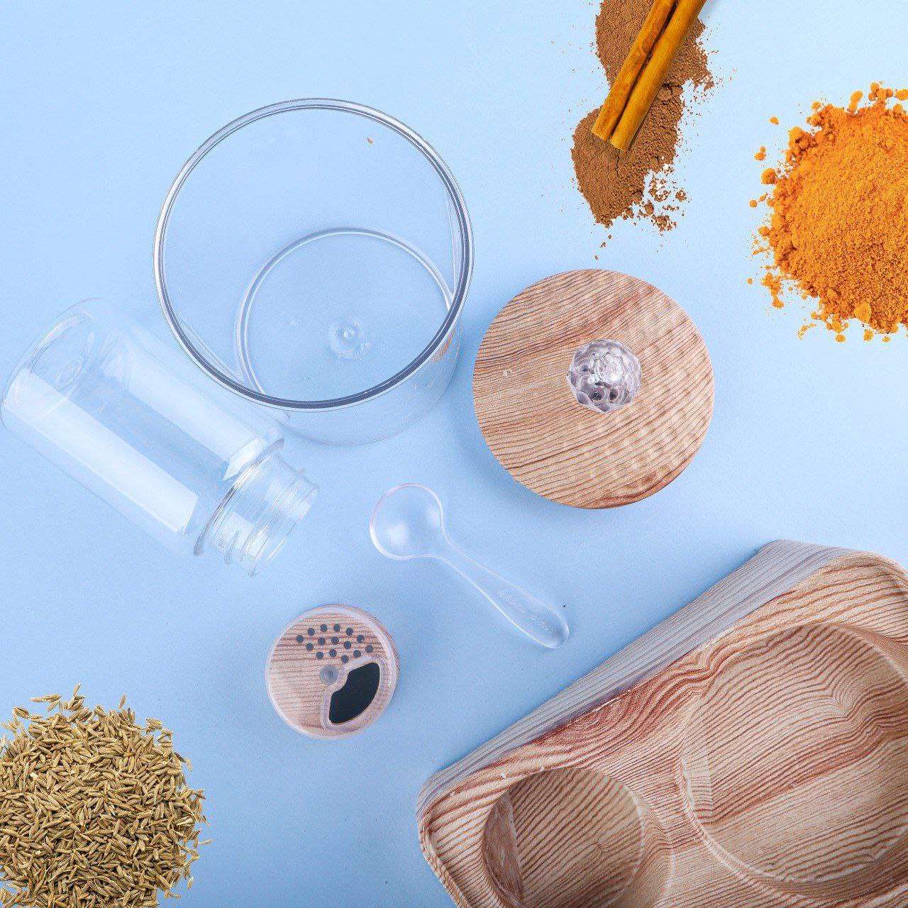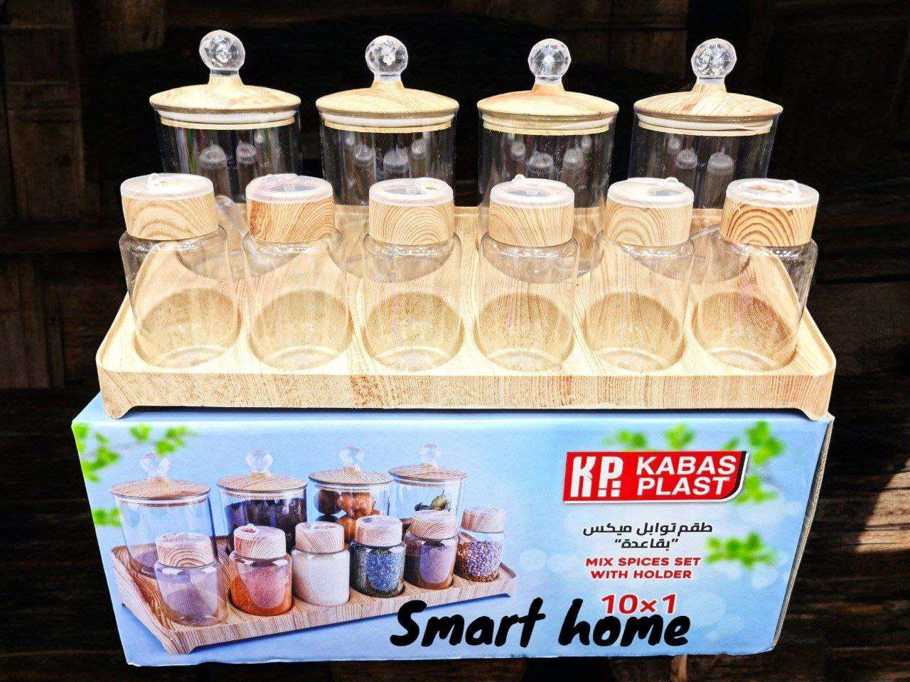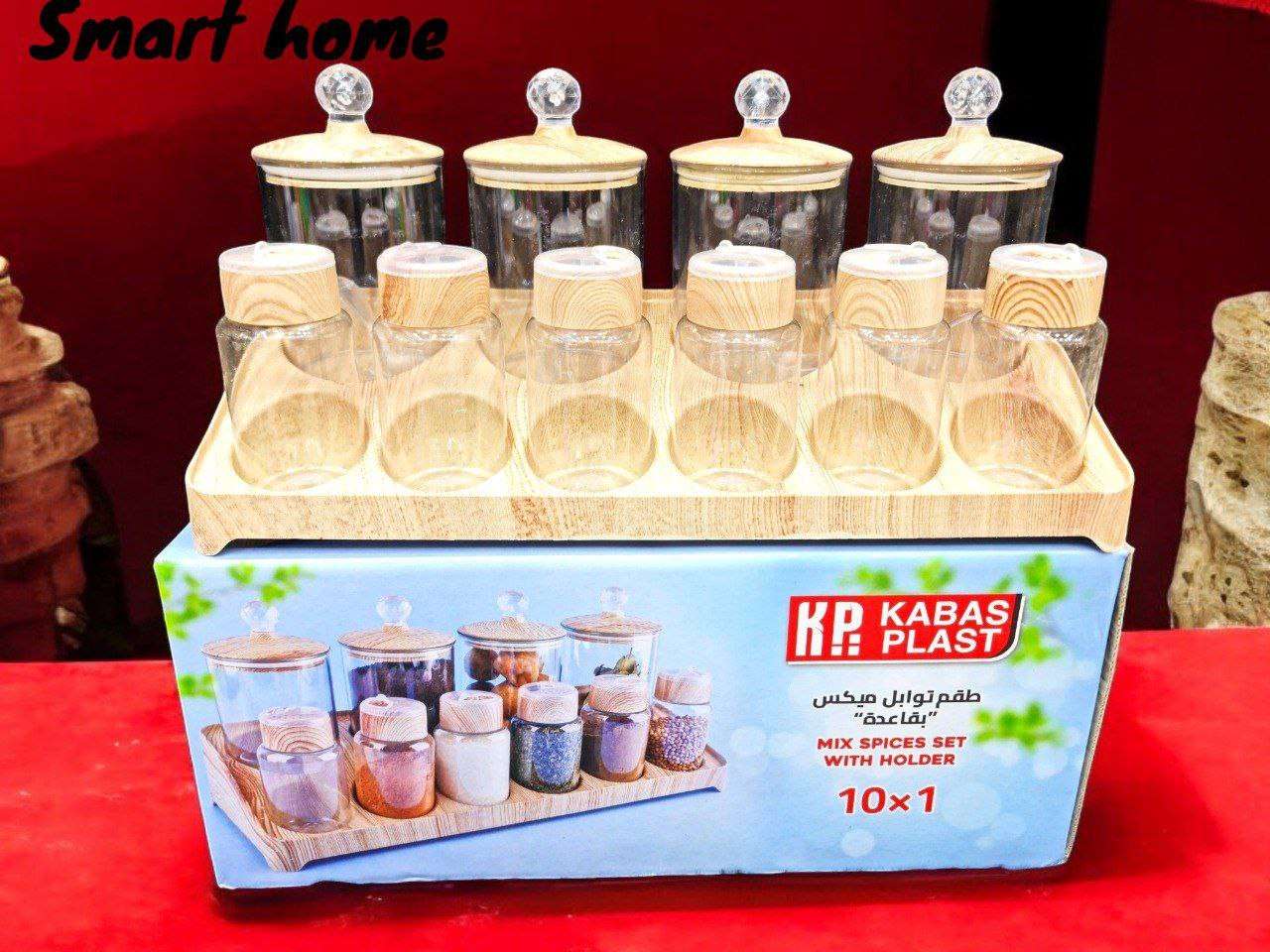 💥 طقم توابل ميكس 10*1 💥 ✏️طقم مكون من 10 قطع ✏️4 قطع مقاس 300ml اكرلك ب أغطية مزودة ب جوان لمنع التسريب ب ألوان خشبية مميزة ✏️6 قطع ملاحة صغيرة بلاستيك ضد الكسر ب أغطية متينة وقابلة للاستخد