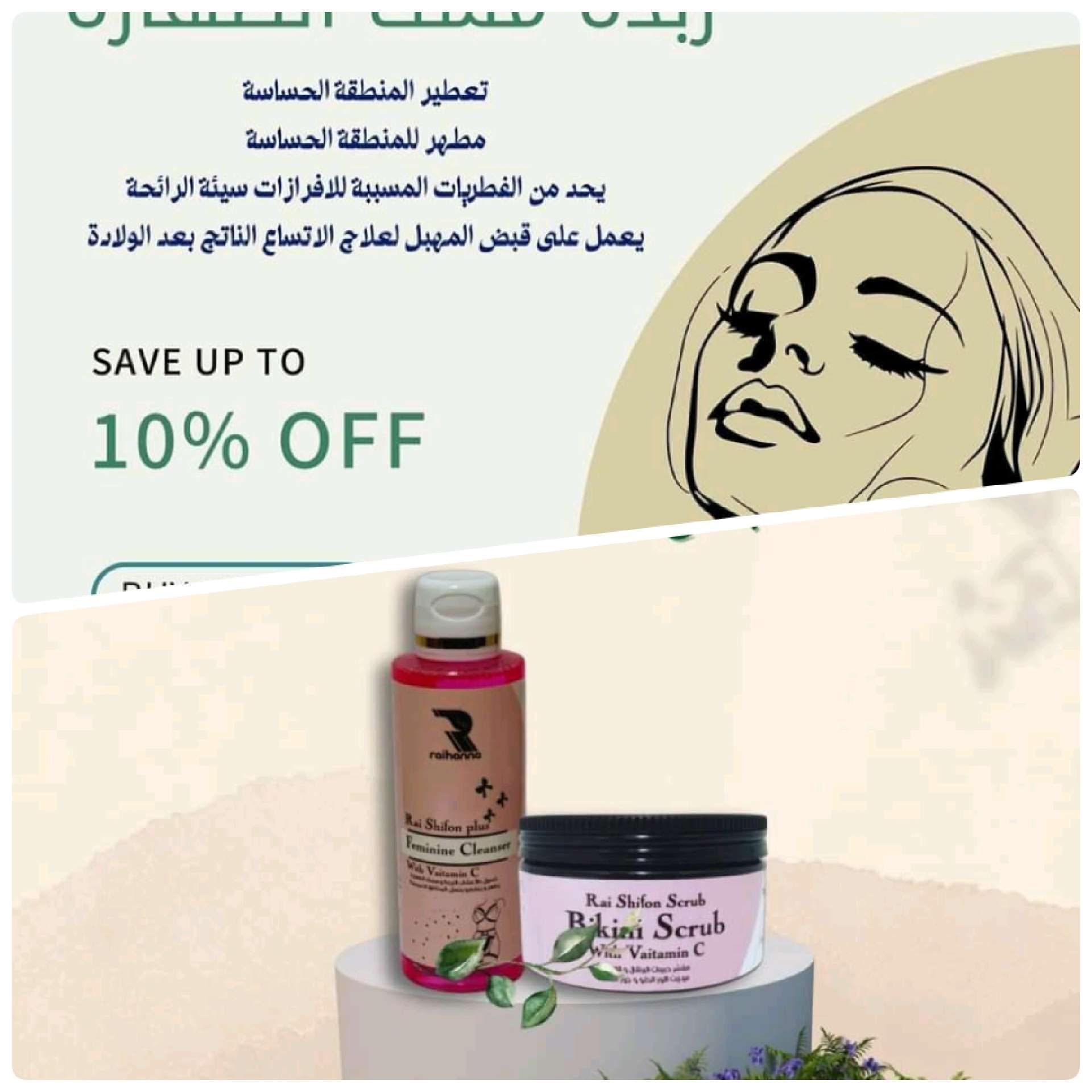 منتج العناية بالبكيني تفتيح وتطهير وتعقيم البكيني اشتري راي شيفون سكراب وزبدة مسك الطهارة واحصل علي غسول راي شيفون هدية