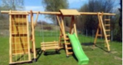مجمع خشبي يحتوي على برج للصعود +سلم+سلم خشبي للتسلق +٢مرجيحة +٢زحليقه المقاس 500* 600*330