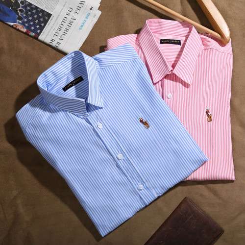 قميص مقلم بولوا خامه أكسفورد لوجو تطريز سبع ألوان لونين ( لبني - روز) ٤ مقاسات تلبيس من مديم ٥٥ ل ٧٠ لارچ ٧٠ ل٨٠ إكس لارچ ٨٠ ل ٩٠ ٢أكس لارچ ٩٠ ل ١٠٠