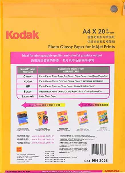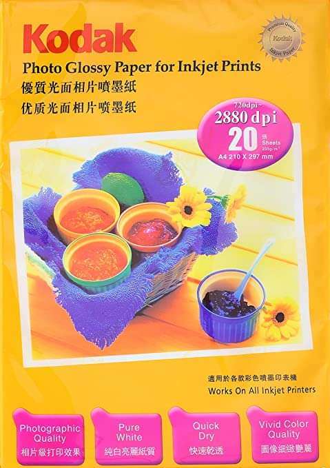 Kodak Photographic Quality Photo Glossy Paper A4-235gsm - White فوتو جلوسي كوداك ياباني