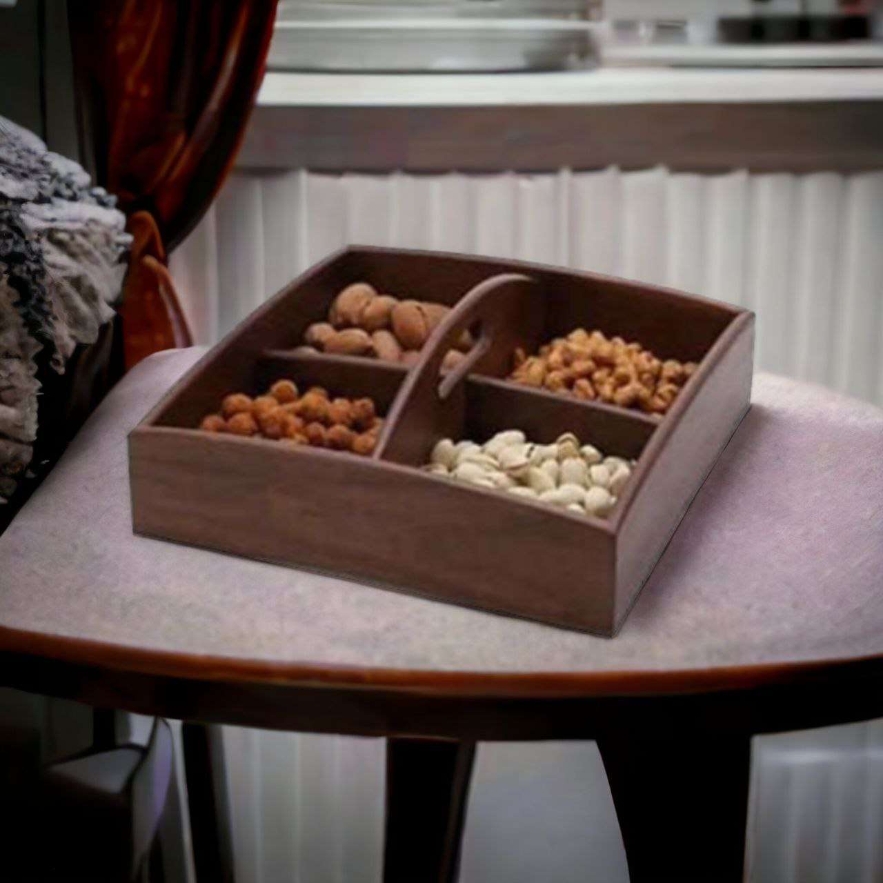 تسالي X تسالي 🎷🍪🍬🌰🎺 علبة تسالي وكاندي يعني شيكولاته ولب ومقرمشات الخامه خشب mdf عاليه الجوده العلبه مربعه مقاس 30X30 سم مقسم من الداخل 4 خانات 🍪🍩🥜 العلبه بمقبض يعني سه