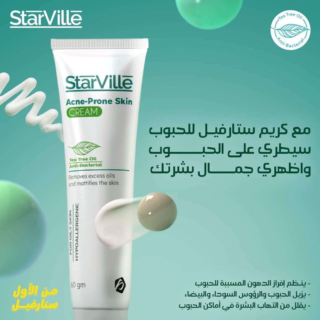 كريم ستارفيل اكني لعلاج حب الشباب StarVille Acne CREAM - كريم ستارفيل اكني لعلاج حب الشباب بتركيبة مكونة من حمض الساليسيليك وزيت شجرة الشاي 🧐 ودي أهم المكونات الي بتحتاجها البشرة لتنظيم إفراز