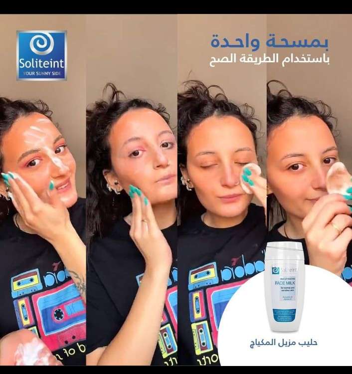 حليب مزيل للمكياج؟ ازاي؟ عشان يرطب بشرتك ومينشفهاش سوليتنت بتقدملك مزيل المكياج بقوامة الكريمي الخفيف، أهم حاجة تستخدمية صح.. دلكي بيه بشرتك عشان المكياج يسيح امسحية بقطن حرفيا جدير يشيل اي ميكب ت