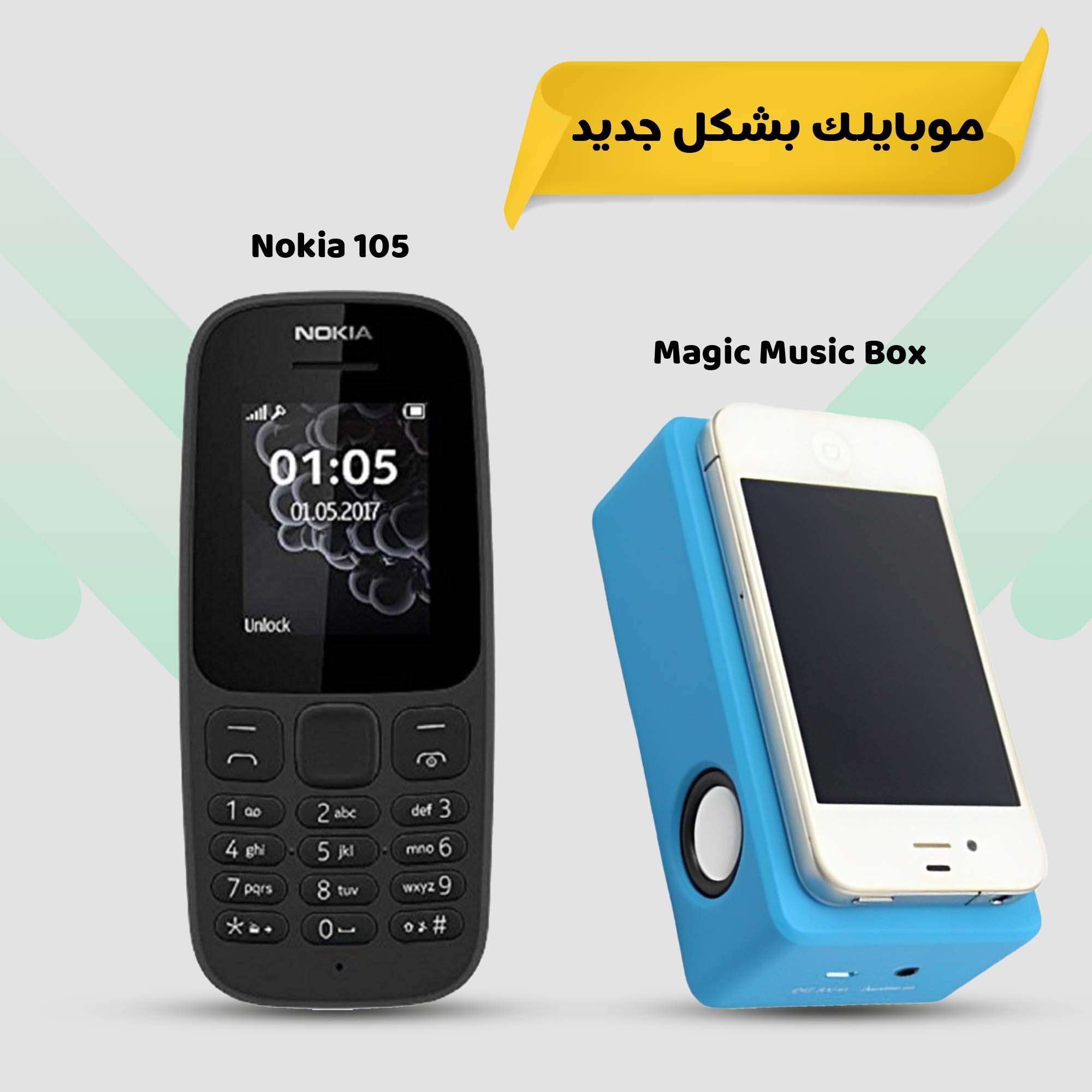 لو بتدور على موبايل قوي بإمكانيات قوية ومكبر صوت قوي؟! يبقى العرض ده ليك Nokia 105 + Magic Music Box, العرض متاح لفترة محدودة. مميزات Nokia 105: موجود فيه راديو و مكان للسماعة. موجود فيه كشاف يسا
