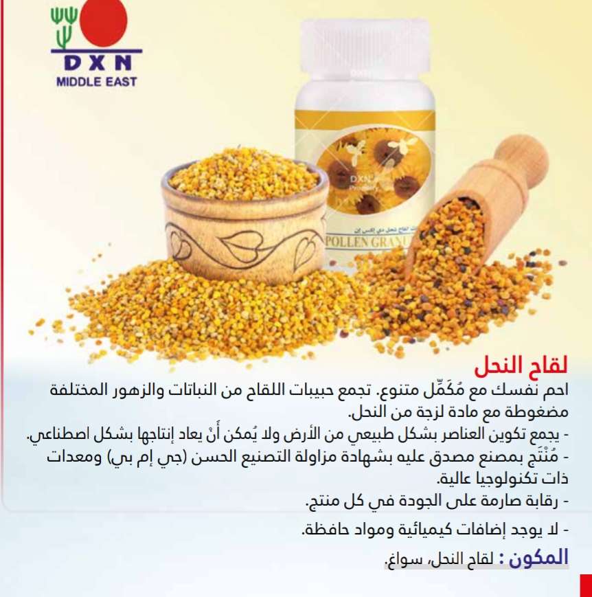قاح النحل ُ احم نفسك مع م ِّكَ مل متنوع. تجمع حبيبات اللقاح من النباتات والزهور المختلفة مضغوطة مع مادة لزجة من النحل. َ ْن يعاد إنتاجها بشكل اصطناعي. ُمكن أ - يجمع تكوين العناصر بشكل طبيعي من ا