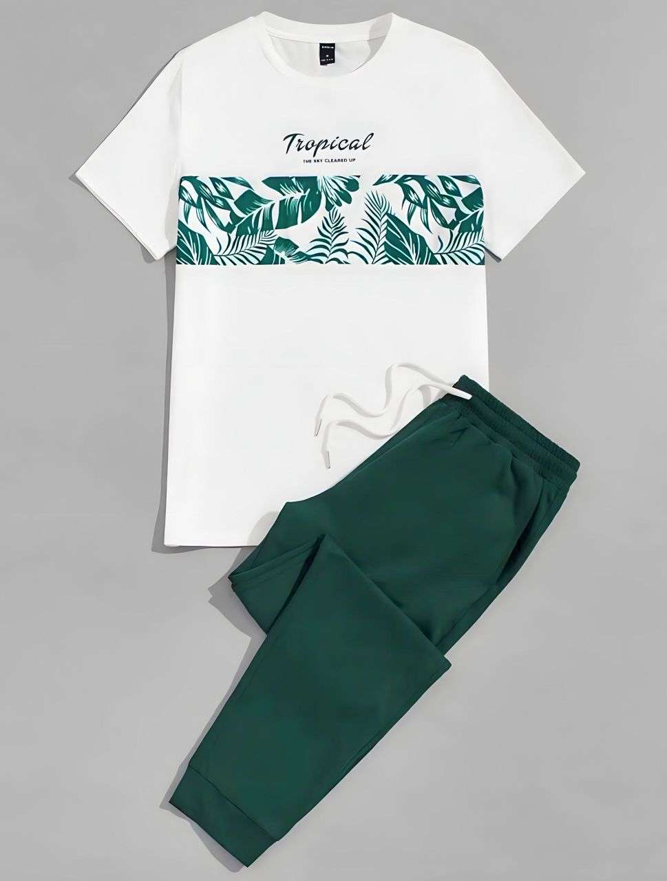 Tropical - ترنج الصيف خامة التيشيرت برسولا قطن البنطلون ملتون ليكرا اعلي تجهيز - طباعه سلك سكرين - الالوان: اسود - كحلي - زيتي - المقاسات ( L- XL - XXL ) - التلبيس: -L 55 kg : 70kg - X