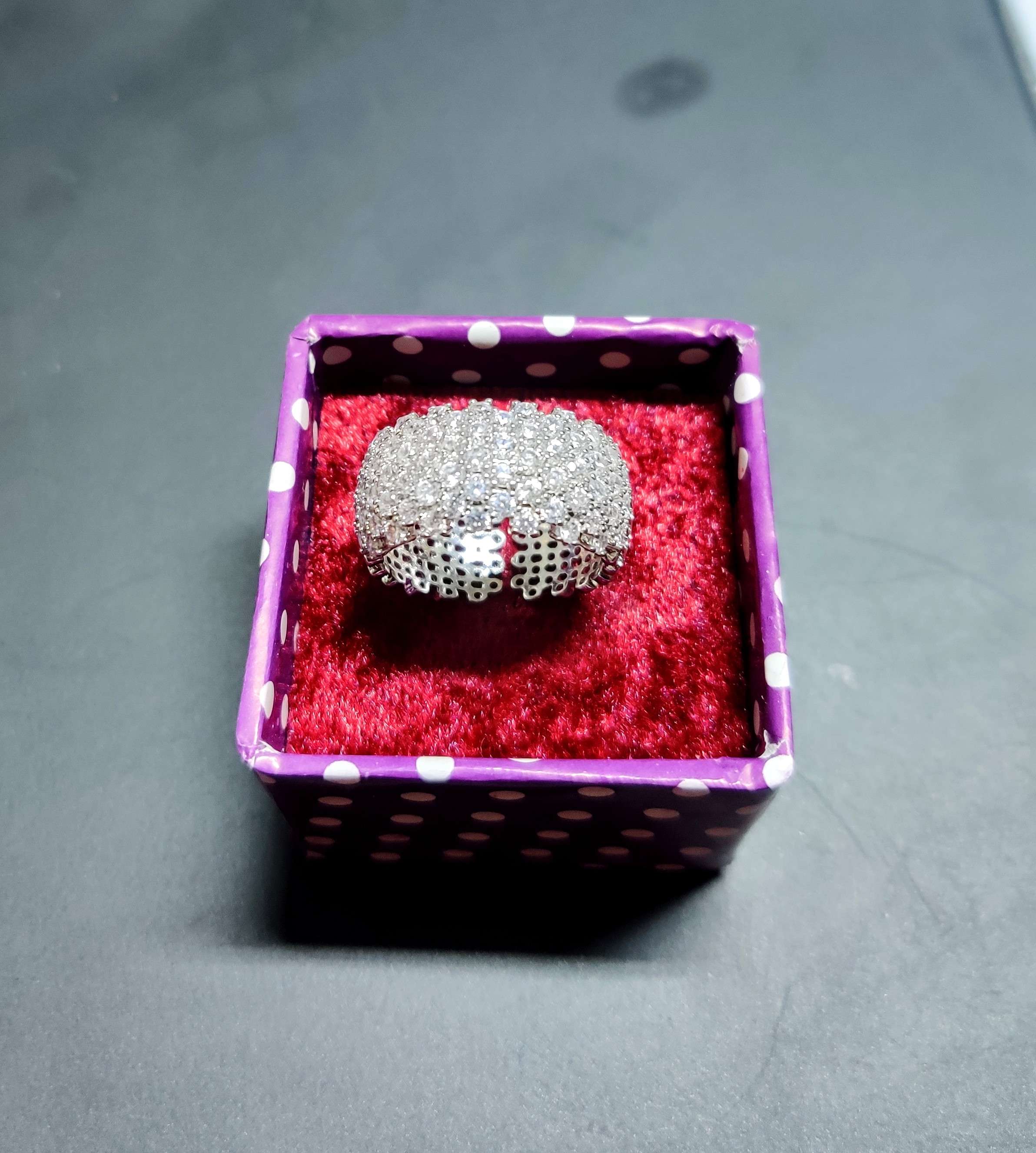 دبلة عريضة بومبيه موديل هالجوم يتوسطها مجموعة من الأحجار الذيركون (( 25 Coin ))
