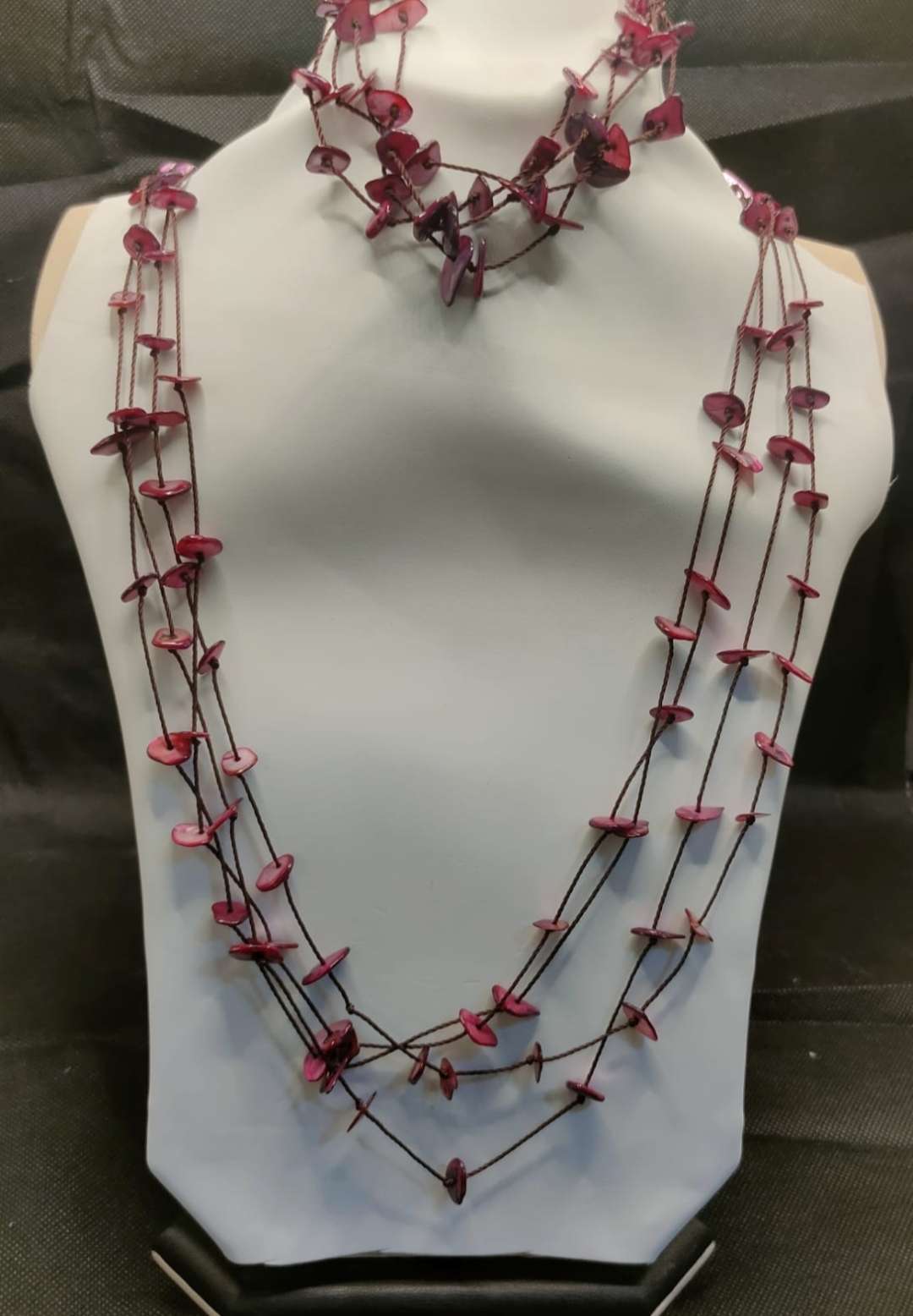 عقد و انسيال كسر صدف و خيوط باذنجانى اللون