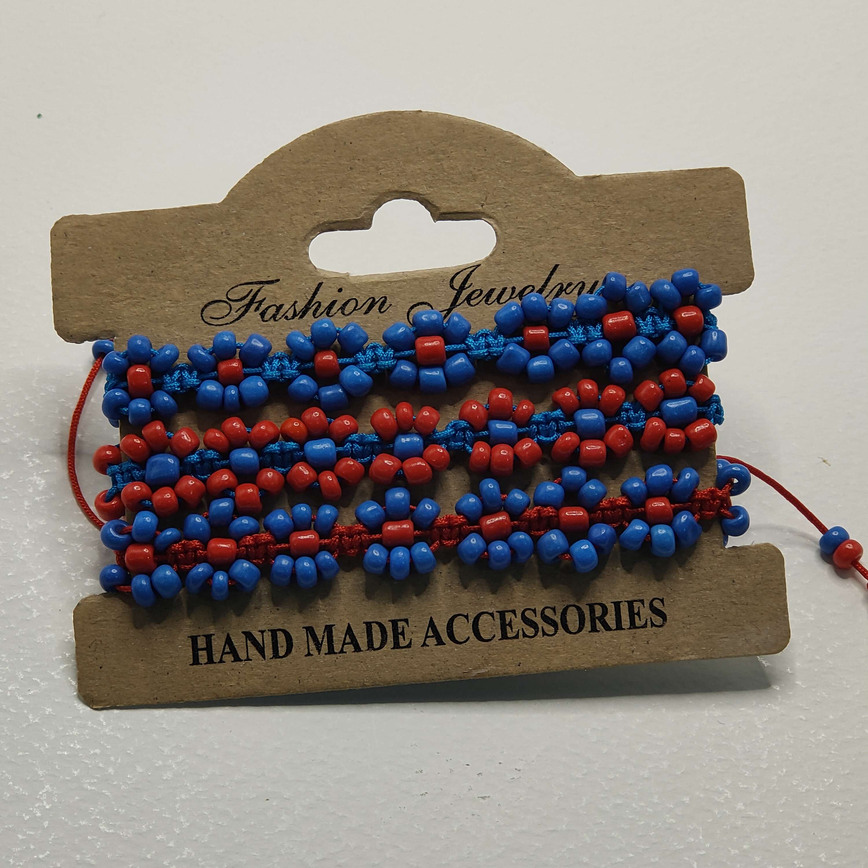 طاقم حظاظات عبارة عن ثلاثة حظاظات لون تركواز فى احمر بخرز التفسيرة و الخيوط