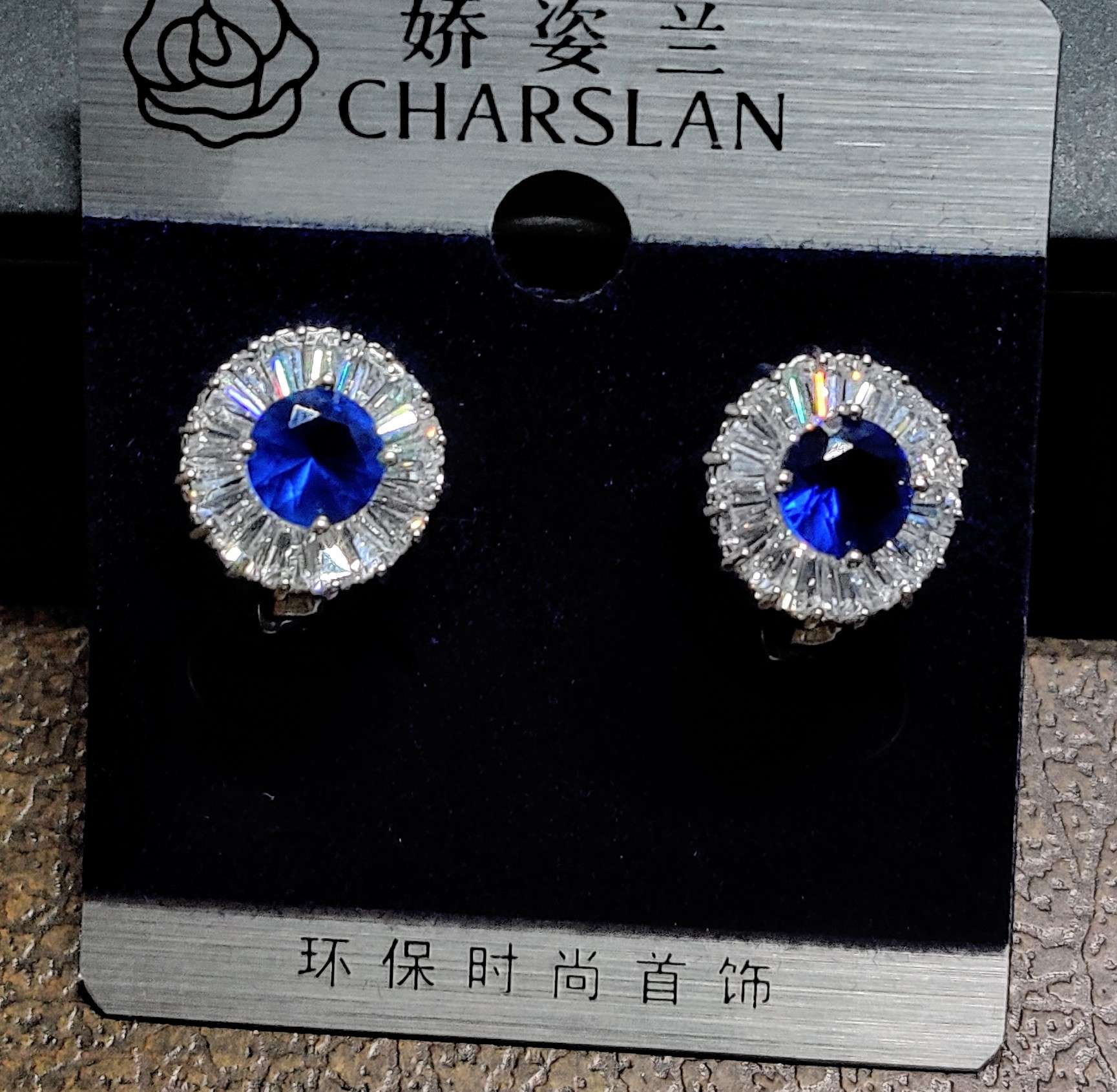 حلق كلبس اكسسوار مغطي بطبقة البلاتين الابيض وبه احجار ذيركون أوربي . رونق الذهب الابيض المطعم بالالماس (( 20 Coin ))