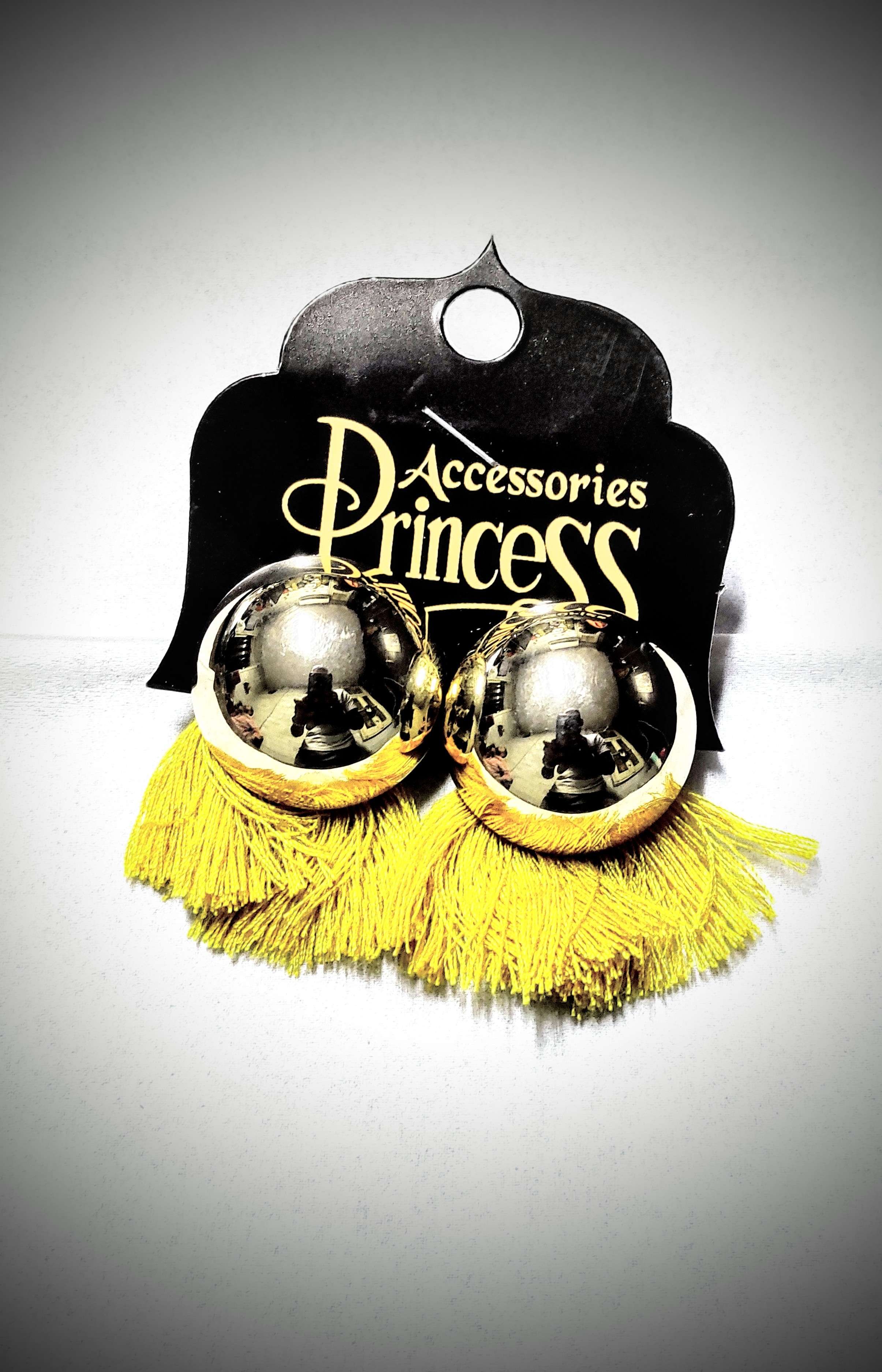 حلق اكسسوار دبي مطلي بماء الذهب. ومطعم شراشيب صفراء (( 20 Coin ))