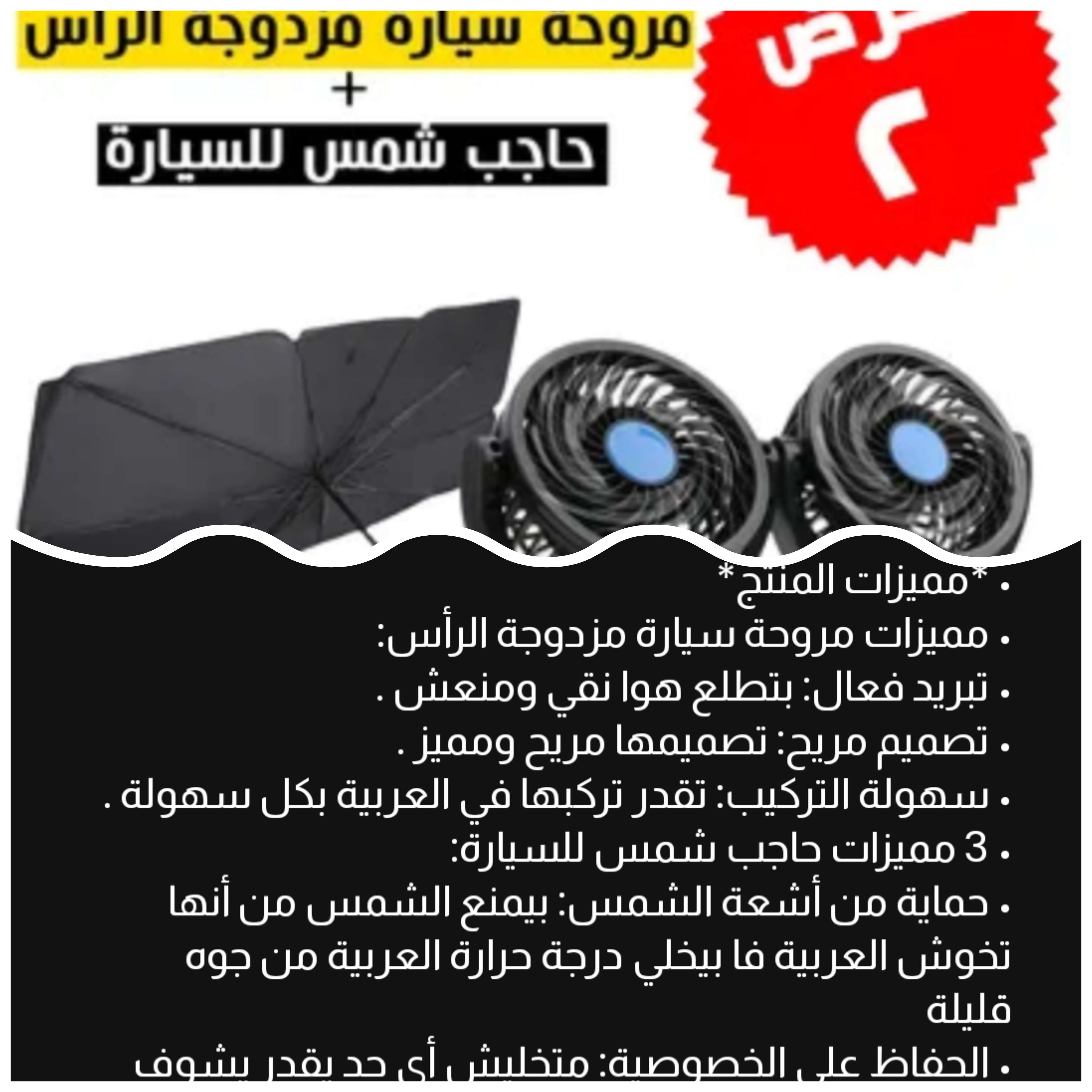 مروحه سياره مزدوجه الراس +حاجب الشمس للسياره