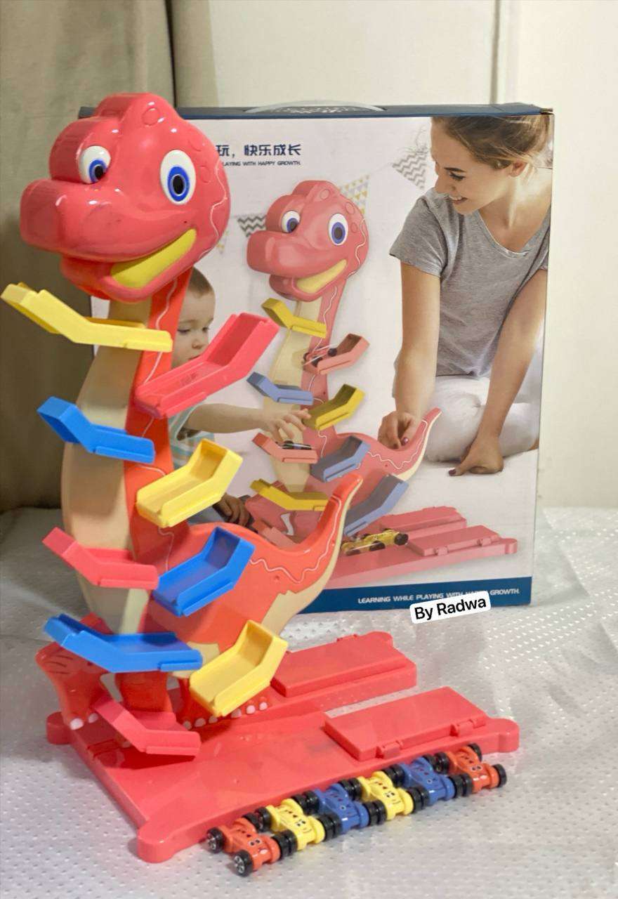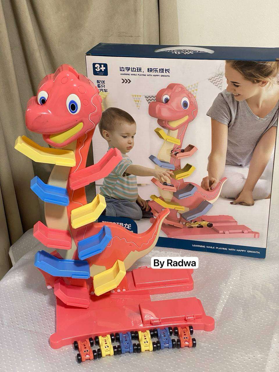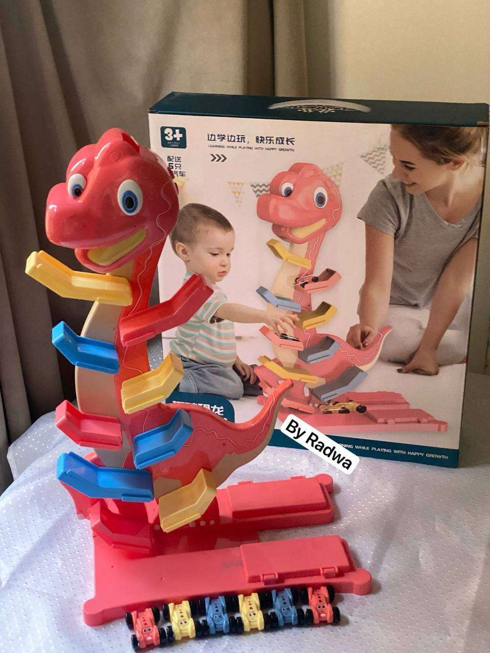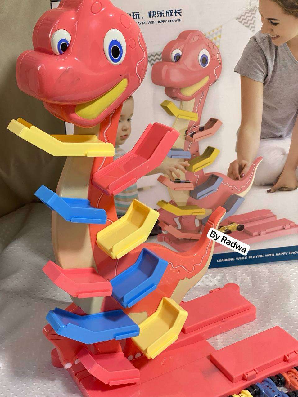 🧡تراك داينو القمر حبيب الحلوين بيعمل موسيقي وبينور 🧡لاول مره تراك بيجي معاه ٦ عربيات كيوت جدا بتجري هوا 🧡ارتفاعه كبيييييير 🧡لعبه جماعيه تنفع لاكتر من طفل 🧡بنحط العربيه من فوق تجري هوا