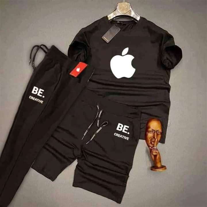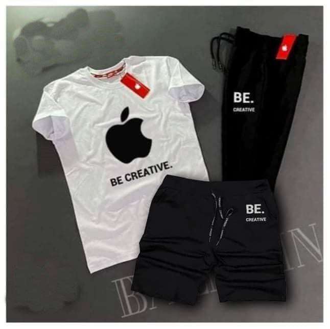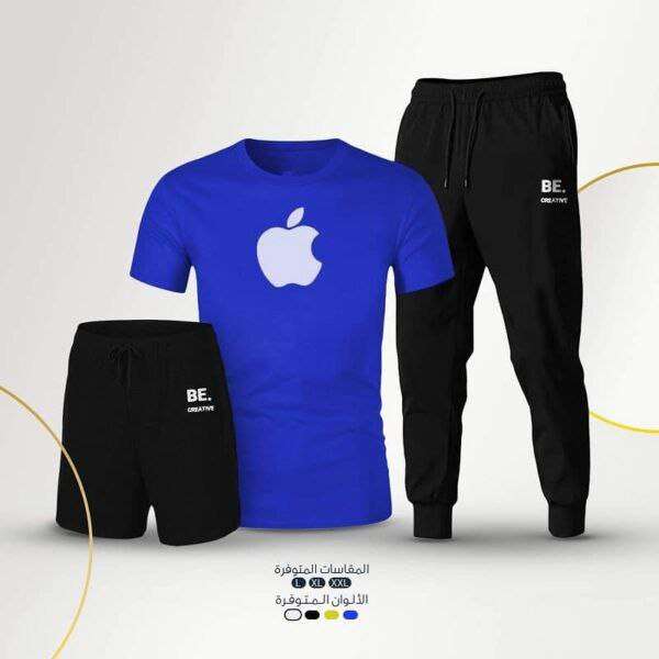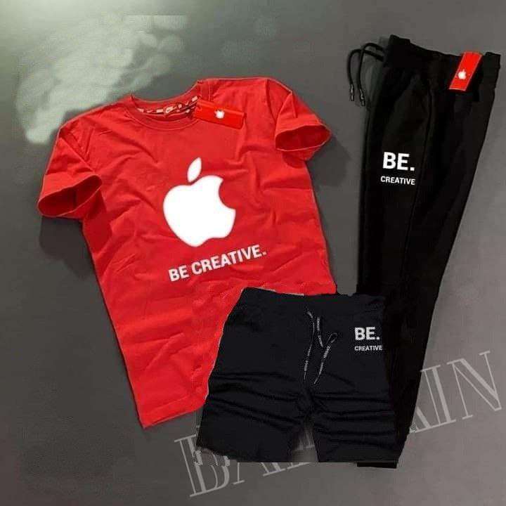 ترنج صيفي Apple ثلاث قطع🙃👇 (بنطلون -شورت-تيشرت) -بنطلون خامة سمر ميلتون -شورت خامة سمر ميلتون -تيشرت ليكرا مبرد -تقفيل وفينيش عالي -طباعة عالية الجودة الون ( اسود -ابيض-احمر)