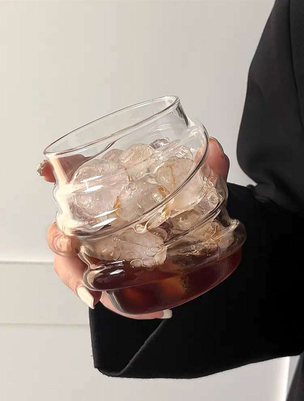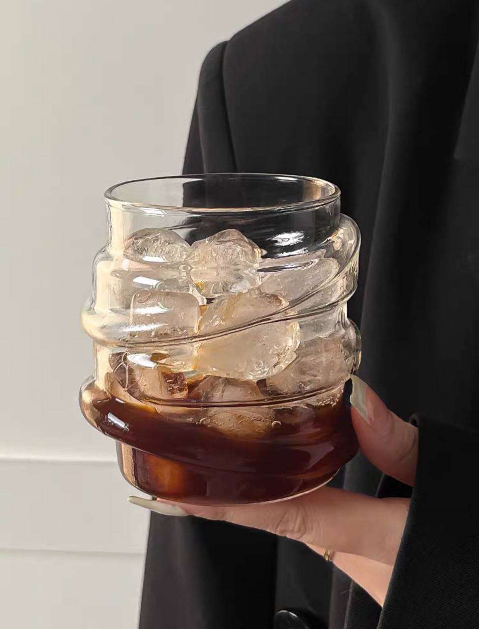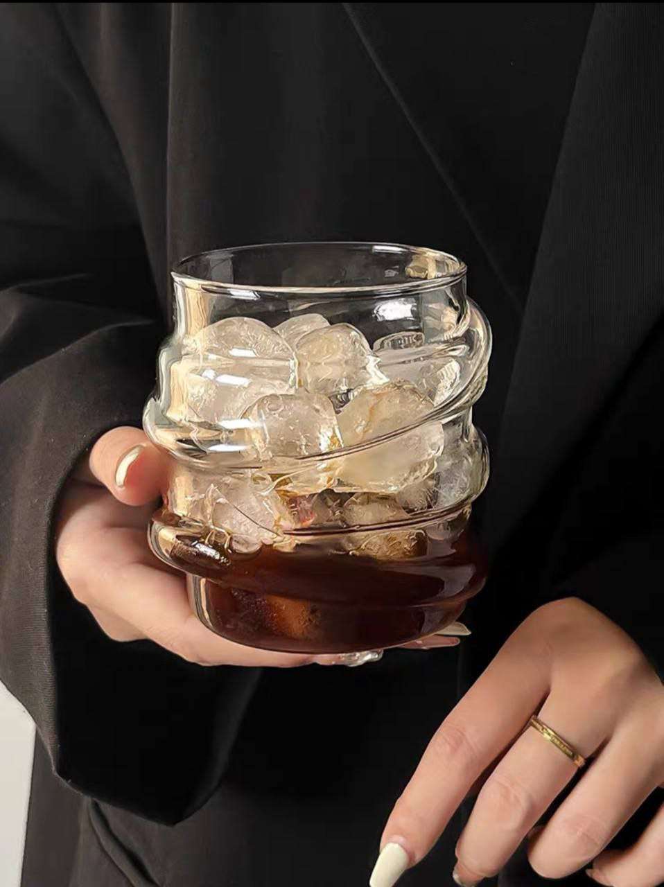 Glass Cup Bubble Tea Glass Drinkware Boba Kawaii كوب زجاج مموج 2025 ❤️ متريال زجاج حراري. سعة 390 ملي القطعه في علبه