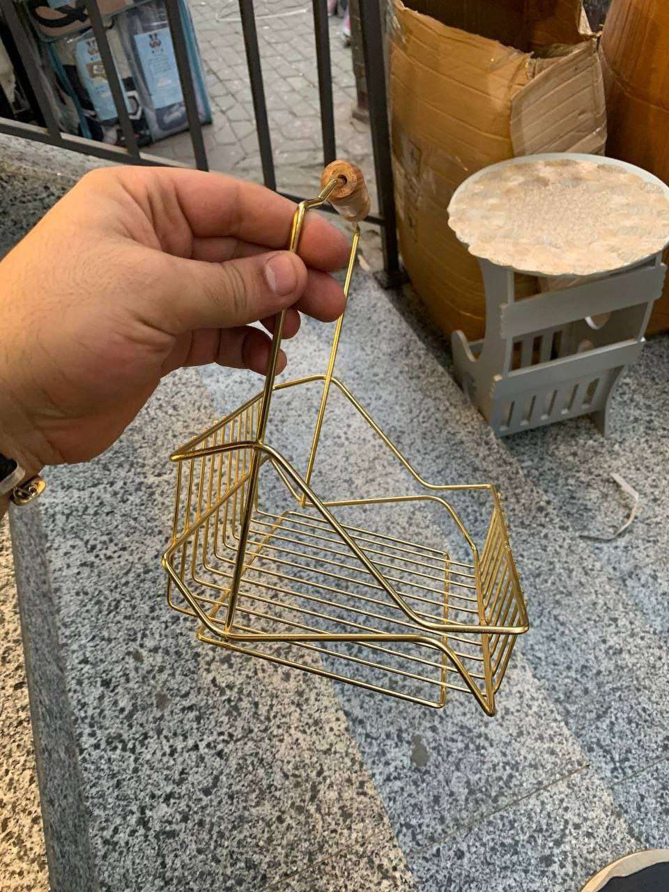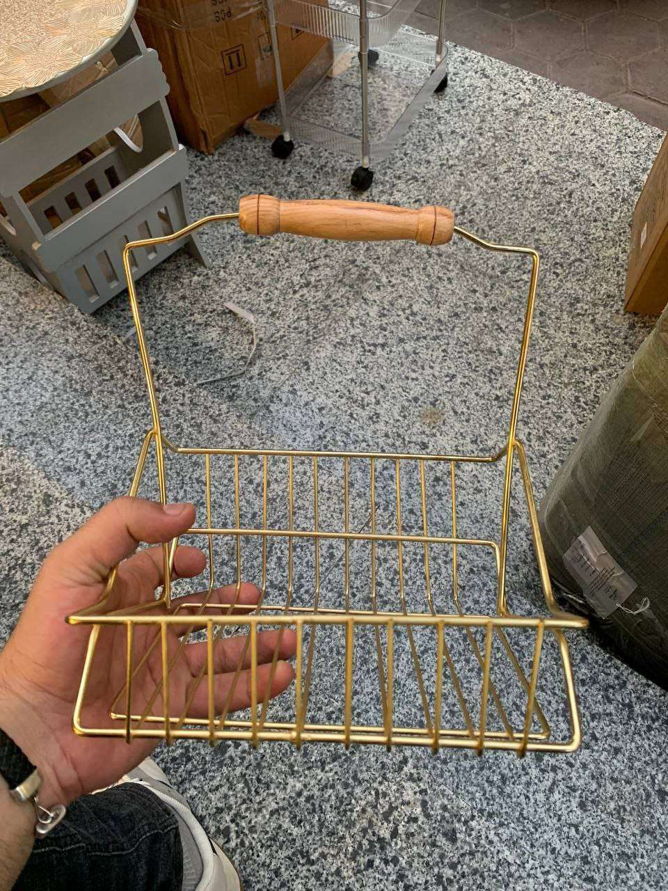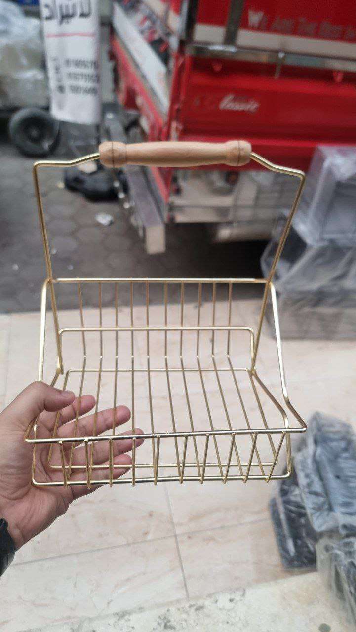 باسكت ميناش او حامل الصوصات 🫕🥫 مستطيل بيد خشب 😍 الصور على الطبيعه 😍 مقاس ٢١سم ×٢٢سم سعه ٦ زجاجات المنتج بكرتونه لون الجولد