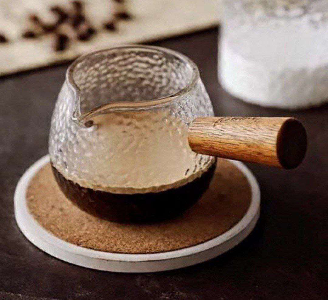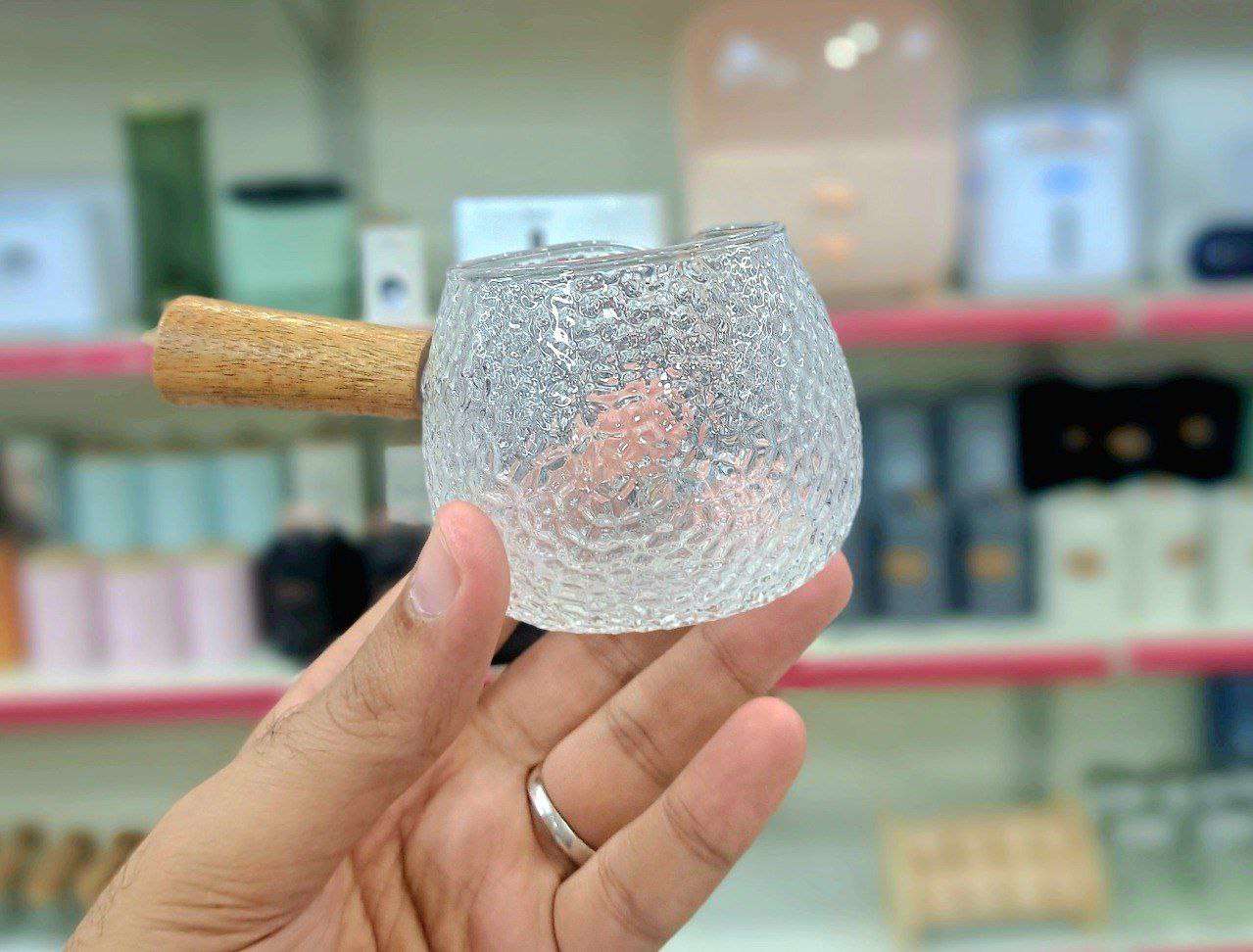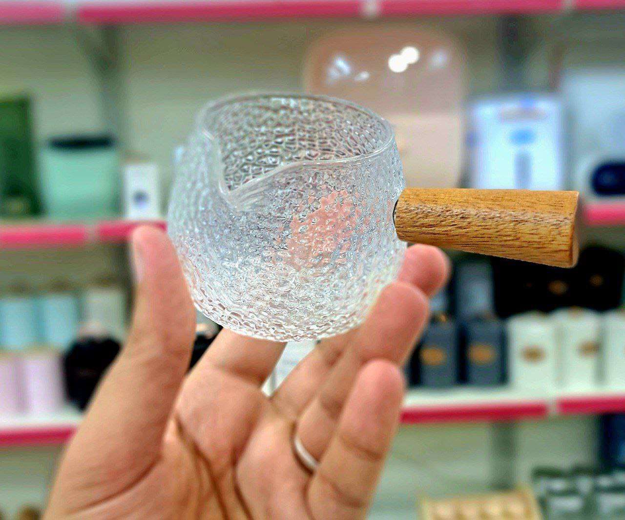 كنكه بيركس او صوصيره زجاج منقرش بيد خشب بامبو سعة حوالي 150 ملي بيركس حراري ع النار