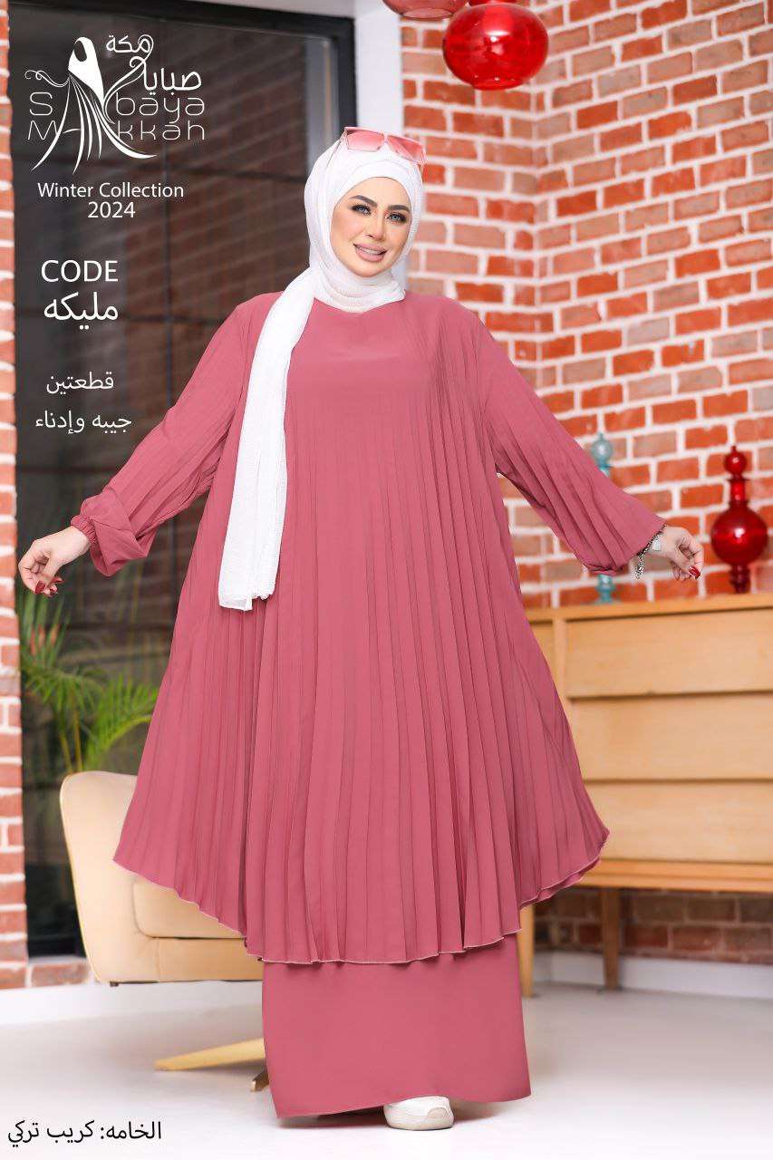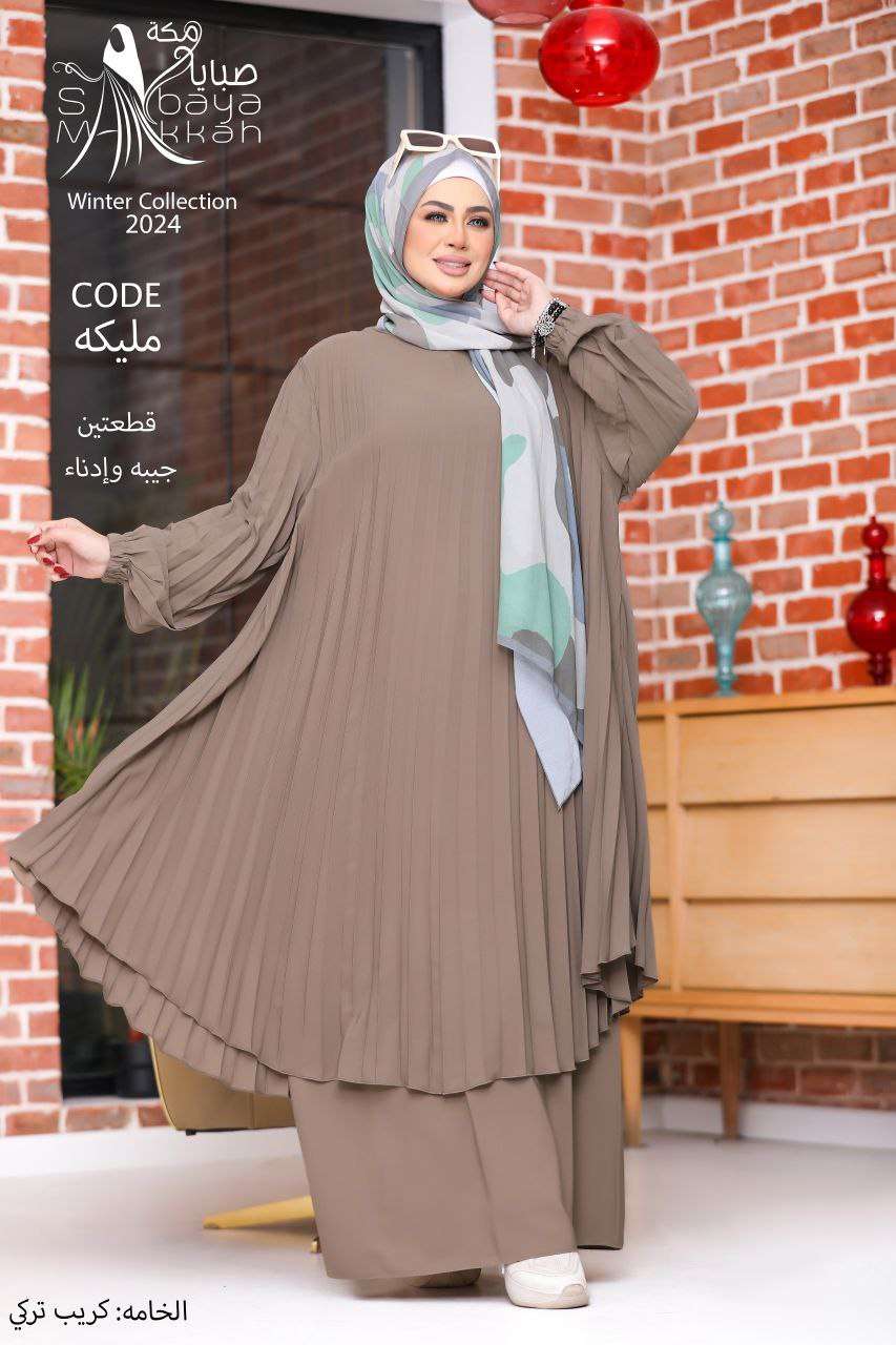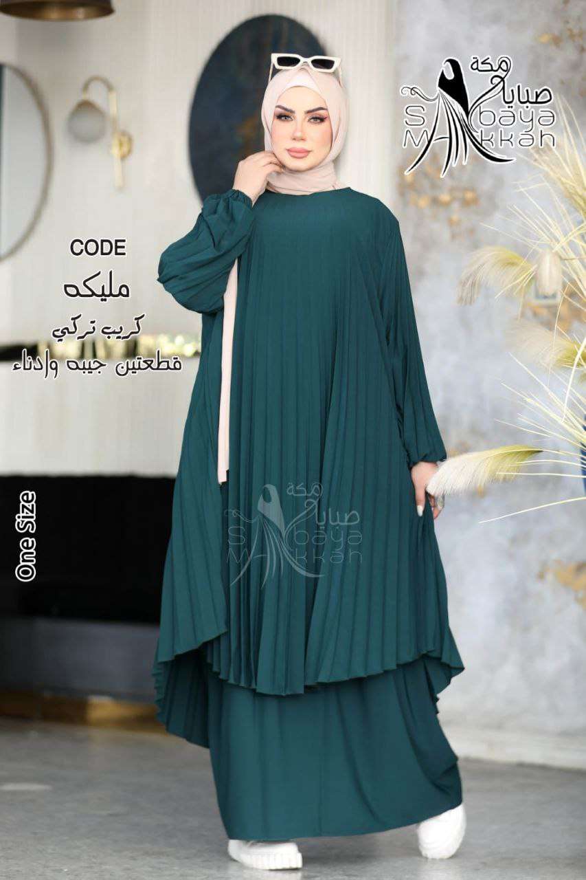 قطعة فنية نُسجت خصيصاً لكِ🔥 الموديل " مليكه " ❤️ - طقم قطعتين ( إدناء فريد الجمال بدايزاين أنيق وفضفاض بكلوش بليسه طويل ، بكم أستك سمبل - جيب ) ❤️🔥 ماتريال : كريب تركي عالي الج