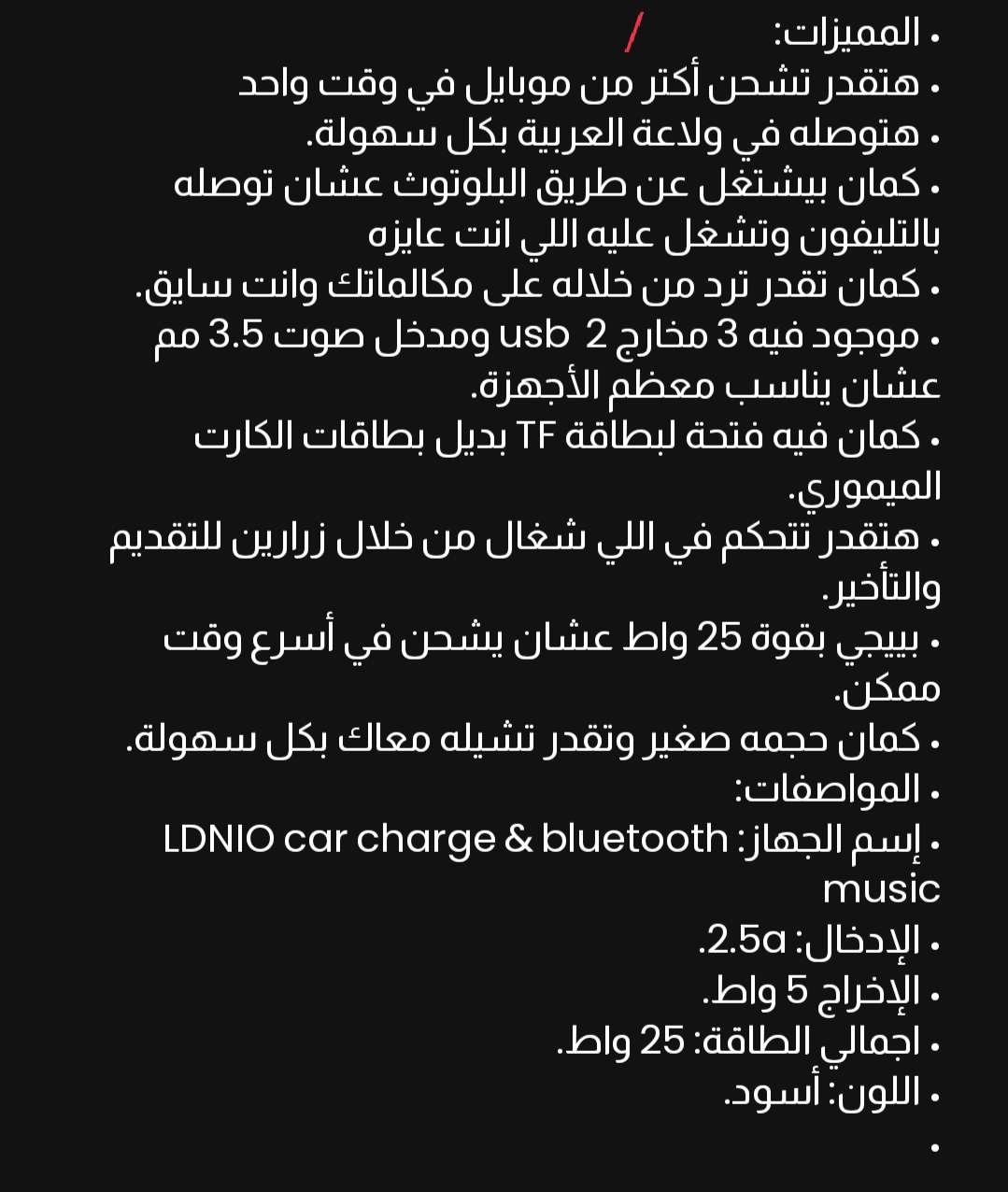 هتقدر تشحن اكثر من موبايل في وقت واحد له وصله ولاعه العربيه وله مميزات كثيره منظر لاول صوره سعر 230+مصاريف الشحن