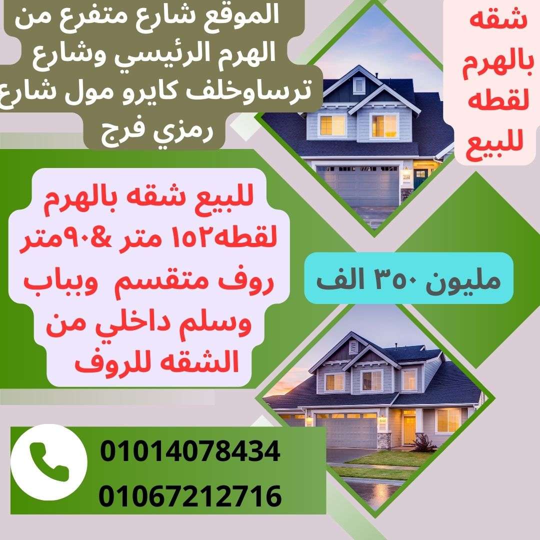 شقه للبيع لقطه الهرم 152+روف 90متر الموقع شارع متفرع من الهرم الرئيسي وشارع ترسا خلف كايرو مول شارع رمزي فرج