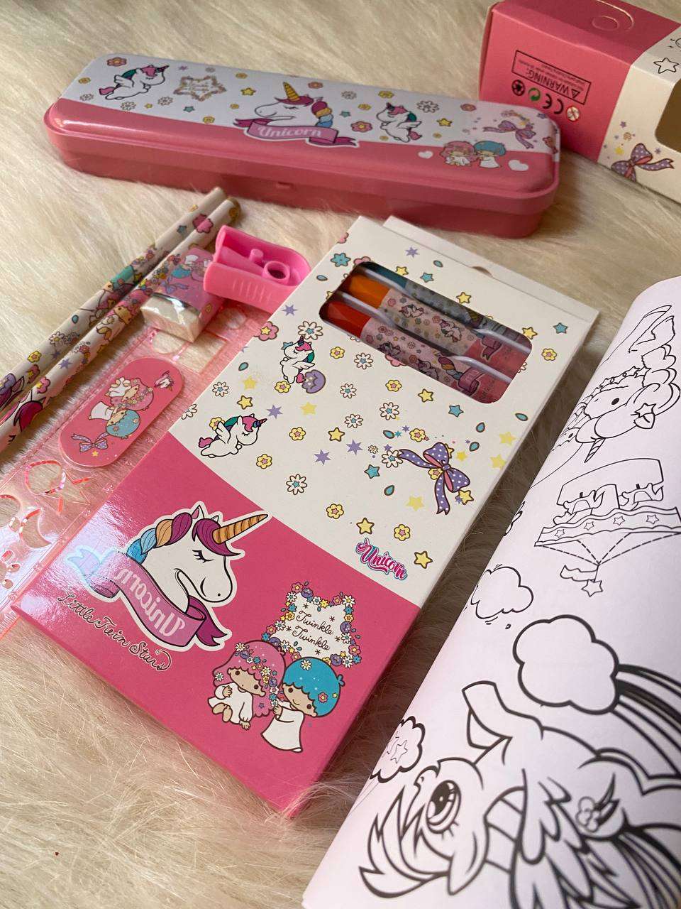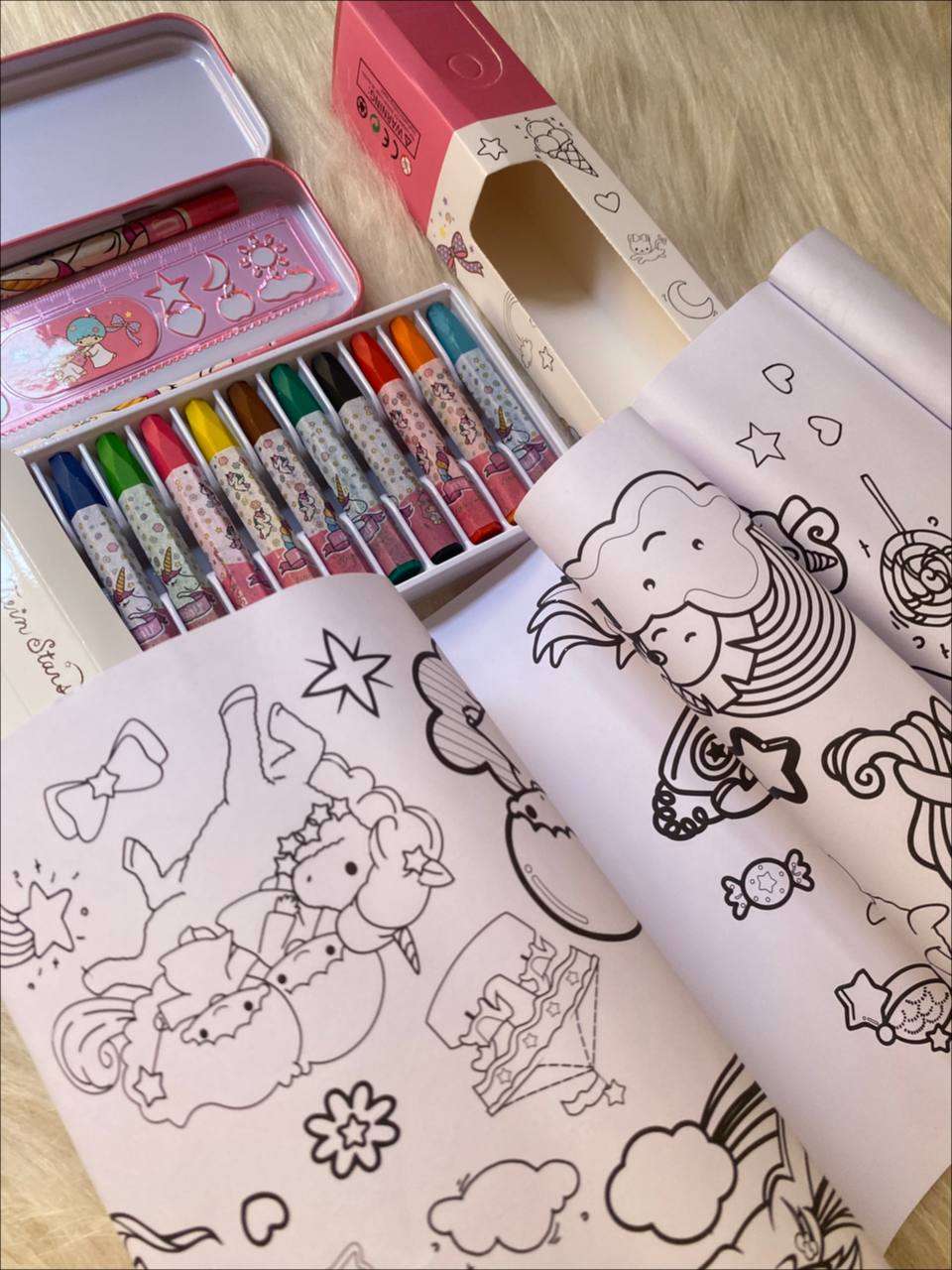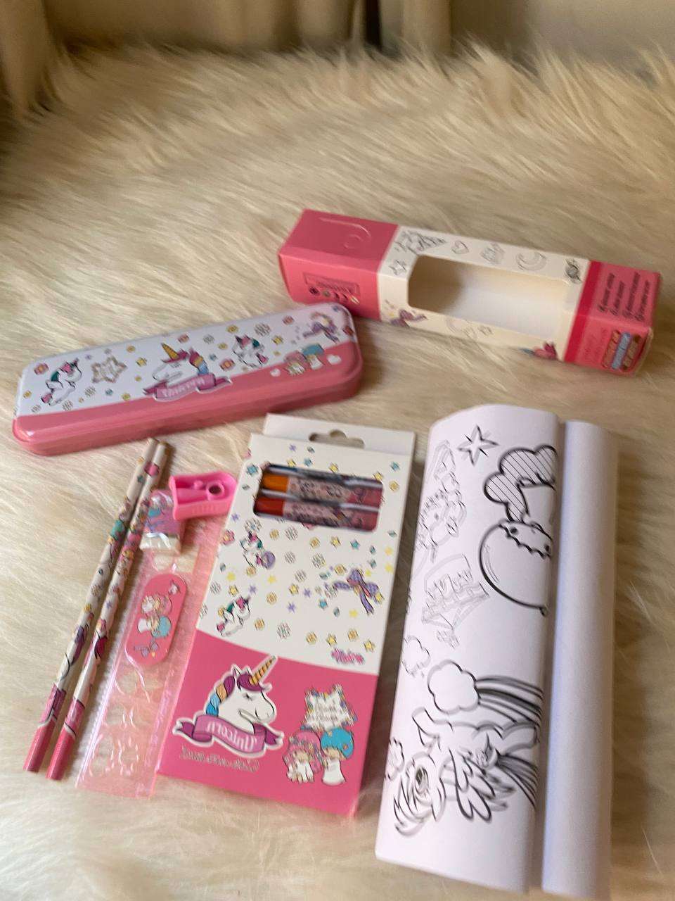 طقم رول تلوين +الوان شمع +مقلمة معدن متنية +2 قلم رصاص + براية +استيكة٢٢٥ج.م