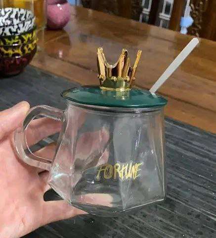 مج تاج وجماله 🔥🔥 مج زجاج غطاء تاج 👑 ومعلقه استانليس مج حراري يتحمل السخن والساقع 😍 نفس شكل الصوره بالظبط 🙈 السعه 300 مللي