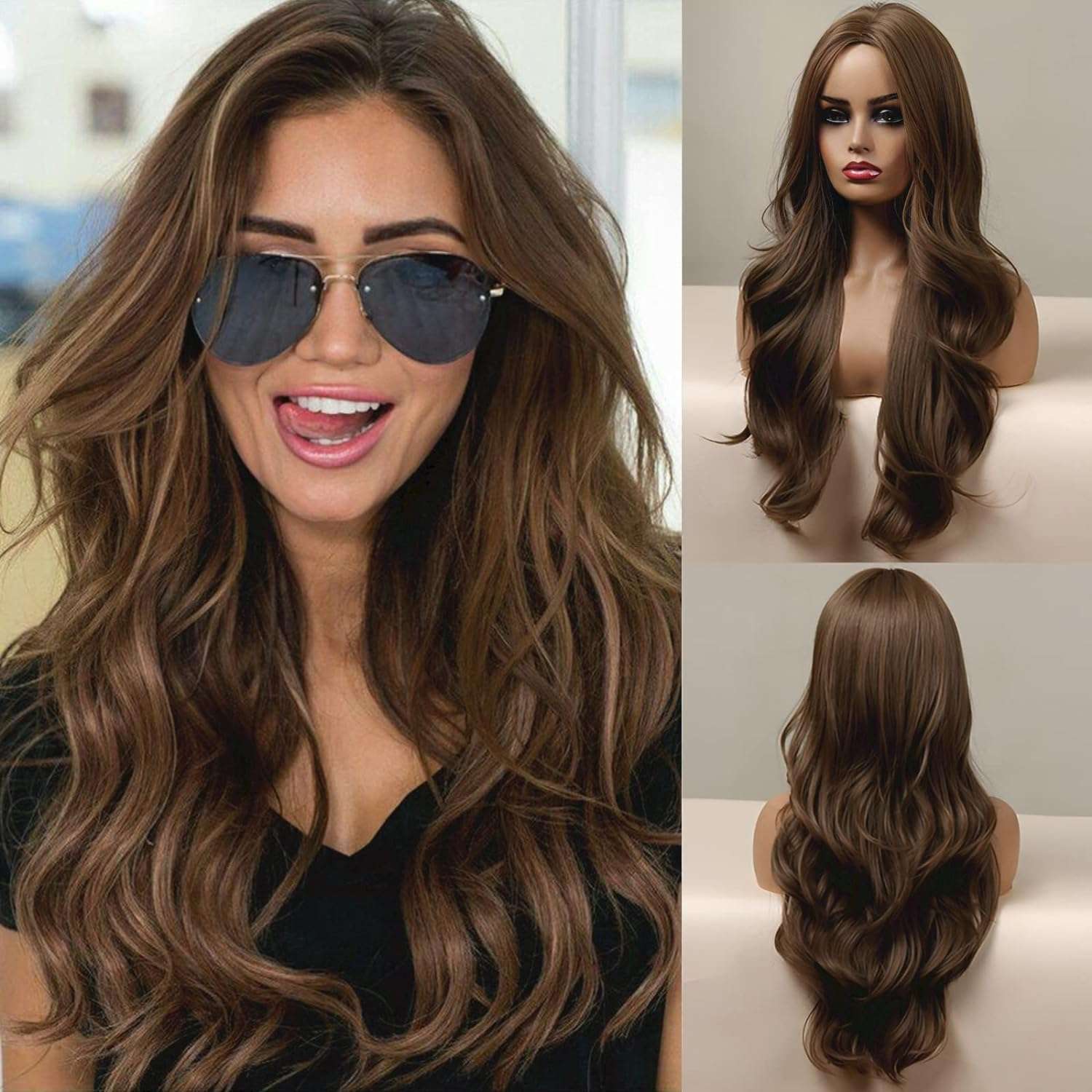 الرئيسيةباروكة شعر صناعي طويل مموج بني اللون