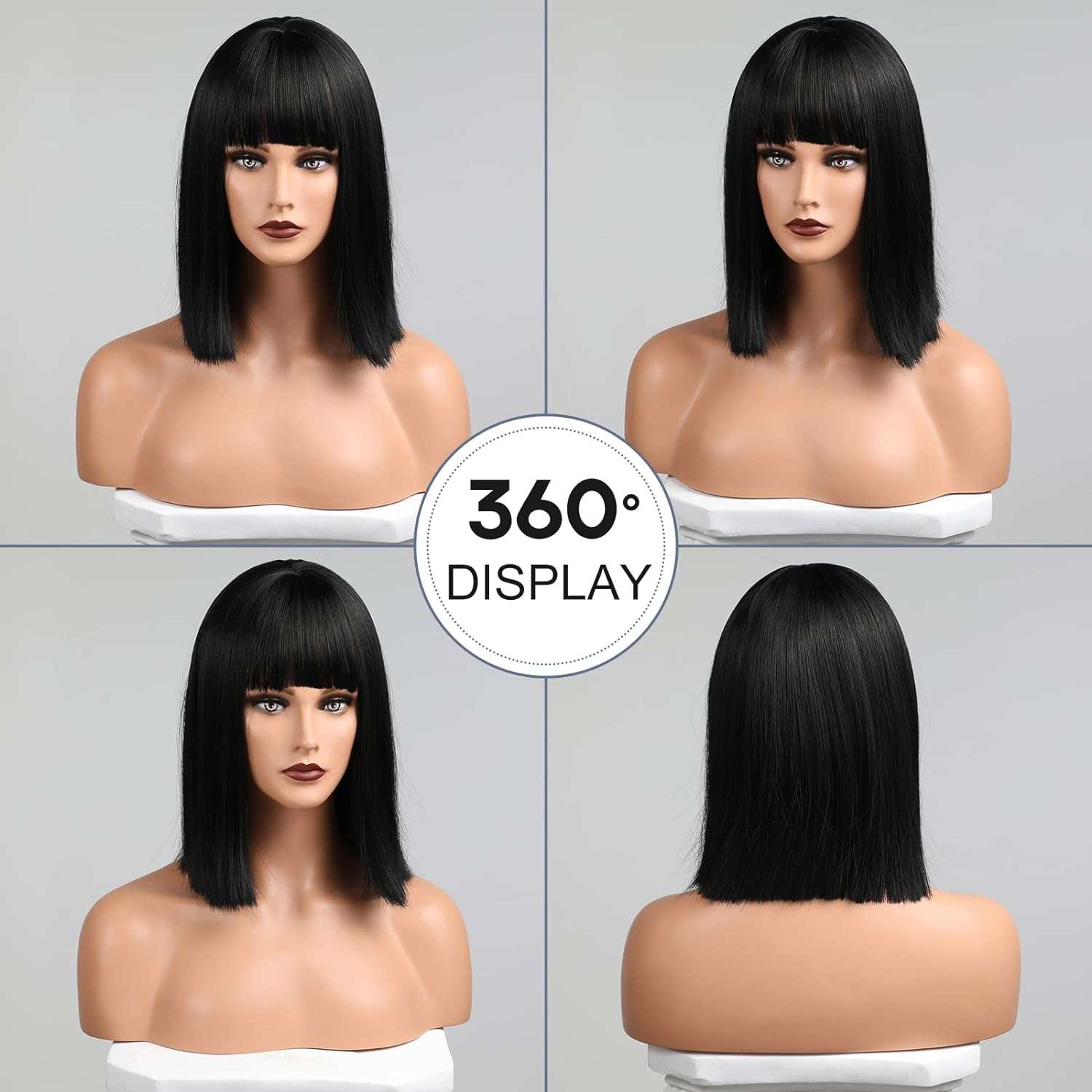 باروكة شعر حراري قصير مفرود اسود اللون قابل للغسيل والمكواه