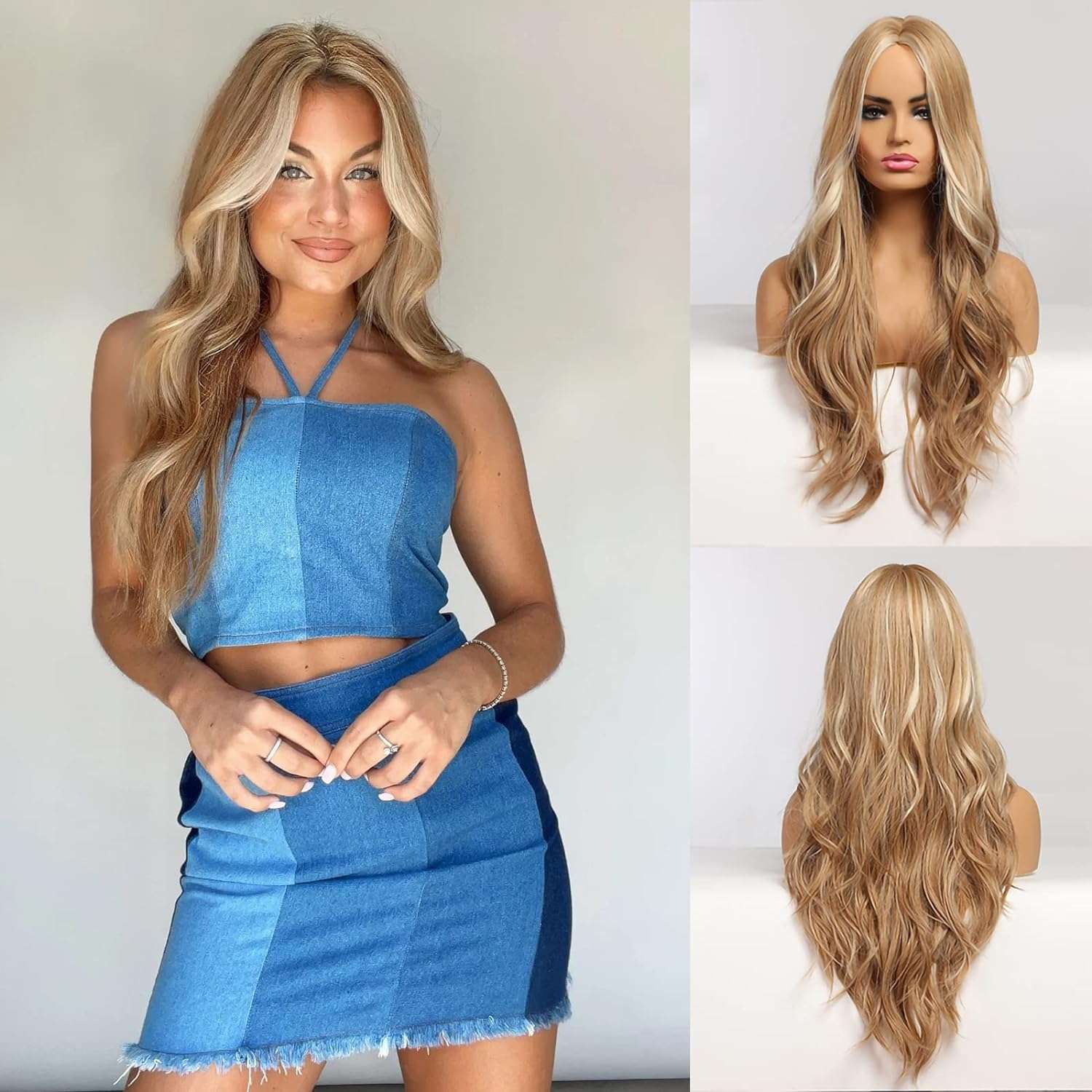 باروكة شعر صناعي طويل مموج اشقر اللون شعر