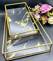 طقم صواني 2 قطعة معدن × قاعدة خشب رخامي٢٥٠ج.م